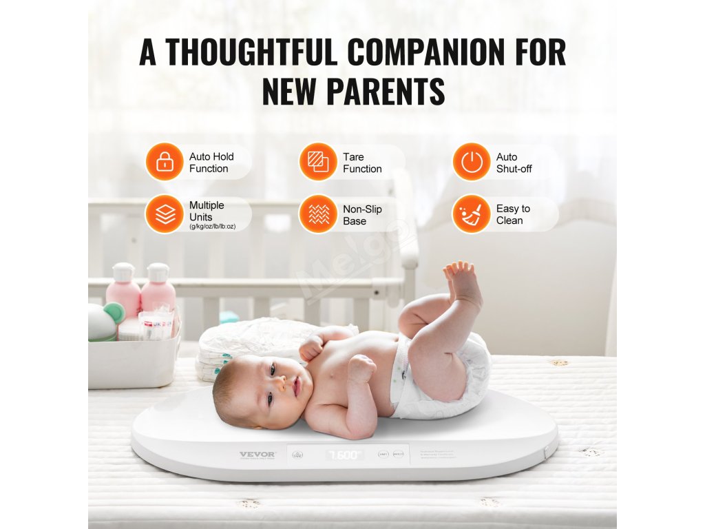 Sledujte hmotnost svého dítěte bez námahy pomocí dětské váhy VEVOR s inteligentním rozhraním Bluetooth 4.0. Odnímatelný zásobník snadno přeměníte na váhu pro kojence a batolata, čímž zajistíte přesné vážení, ať už vaše dítě leží, nebo stojí.