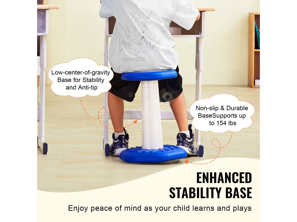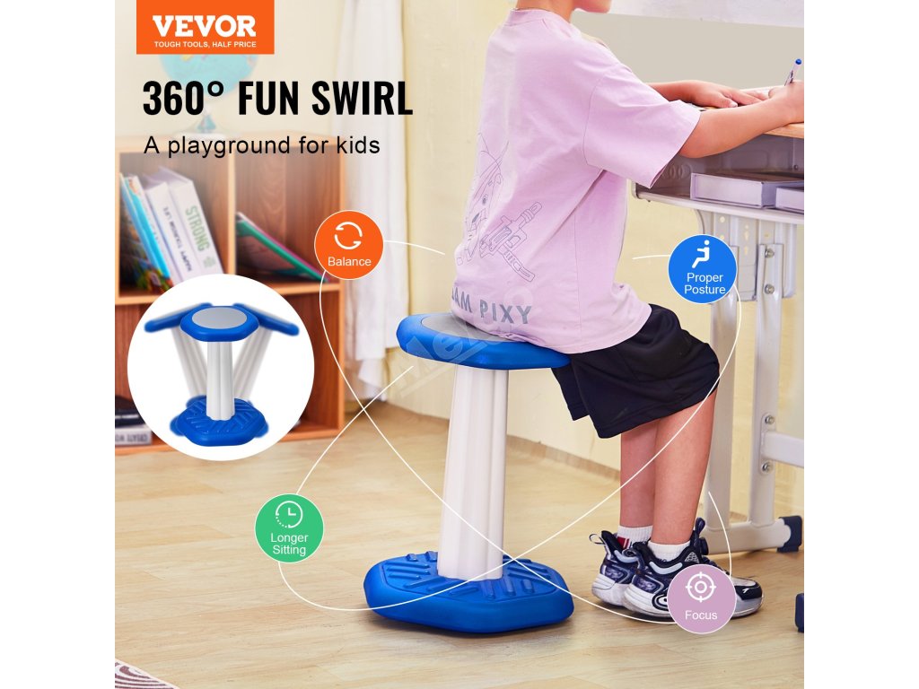 Tato aktivní židle promění sezení v zábavné hřiště pro děti. Je ideální pro povzbuzení aktivních dětí, dětí se smyslovými problémy nebo dětí s ADHD, aby vydržely déle sedět a omezily své vrtění, což jim pomáhá lépe se soustředit.
