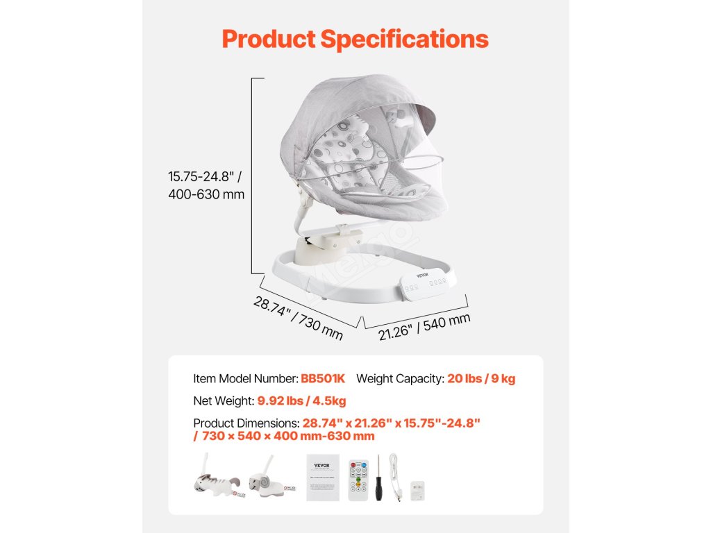 Tato kompaktní dětská houpačka pro kojence váží pouze 10,14 kg, snadno se skládá a lze ji vzít kamkoli s sebou. Ať už jste doma nebo na cestách, je to ideální řešení pro zaneprázdněné rodiče. Podporuje provoz přes USB nebo na baterie (baterie nejsou součástí dodávky), takže je mimořádně vhodná do jakéhokoli prostředí.