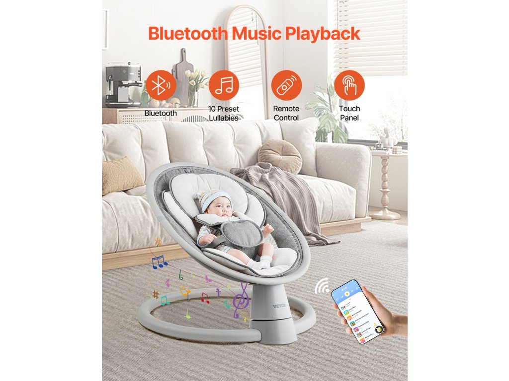 Vytvořte svému děťátku útulný a uklidňující prostor s naší dětskou houpačkou! Je vybavena 5 rychlostmi houpání, dotykovým panelem, dálkovým ovládáním, hudbou Bluetooth, 10 ukolébavkami a 5bodovými bezpečnostními pásy a je ideální pro děti od 0 do 9 měsíců nebo do 20 kg. Lehké a přenosné - ideální na doma i na cesty.