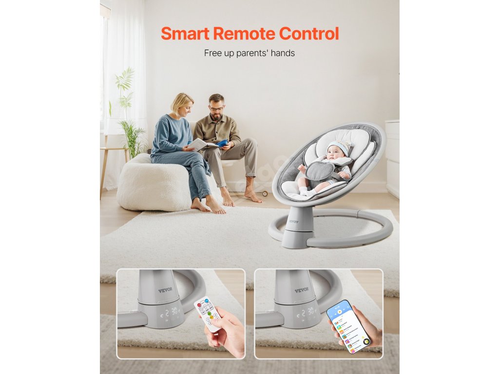 Nabízí 3 možnosti ovládání podle vašich potřeb. Dálkové ovládání umožňuje dálkově nastavit rychlost přehrávání hudby a houpání. Vyberte si z 10 přednastavených ukolébavek nebo se připojte přes Bluetooth a přehrávejte hudbu z telefonu ; chytrý dotykový panel přehledně zobrazuje funkce, což novým rodičům usnadňuje ovládání.