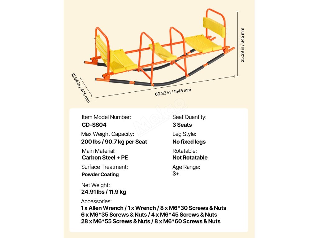 Naše dětská houpačka se sestavuje v pouhých 6 jednoduchých krocích pomocí přiloženého nářadí a návodu. Rodiče mohou rychle sestavit hrací plochu a zapojit se do zábavy bez stresu!