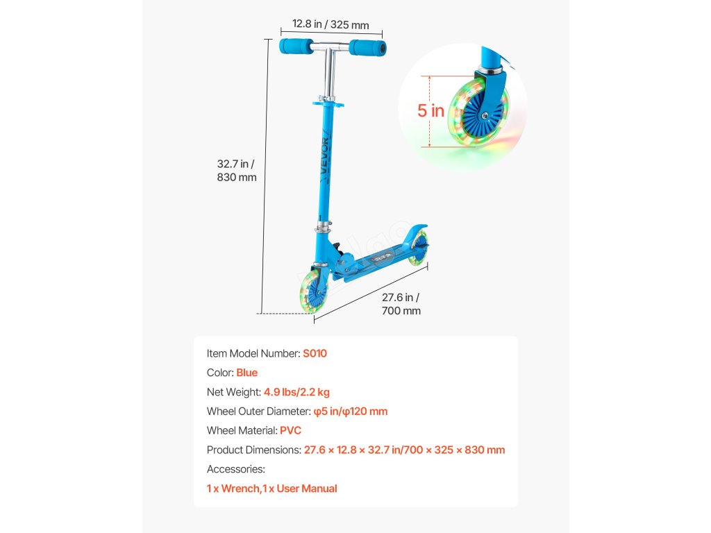 Dětská koloběžka 2-kolová, svítící kola, nosnost 49.9 kg