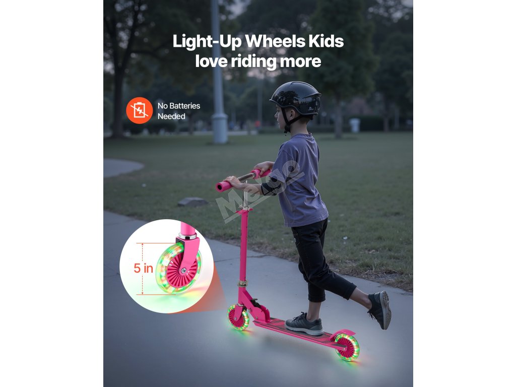 Dětská koloběžka 2-kolová led kola nast. řidítka, 49,9 kg, růžová