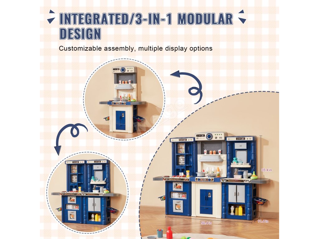 Dětská kuchyňka 3 v 1 s 74 doplňky, zvuky a světlem 3–8 let