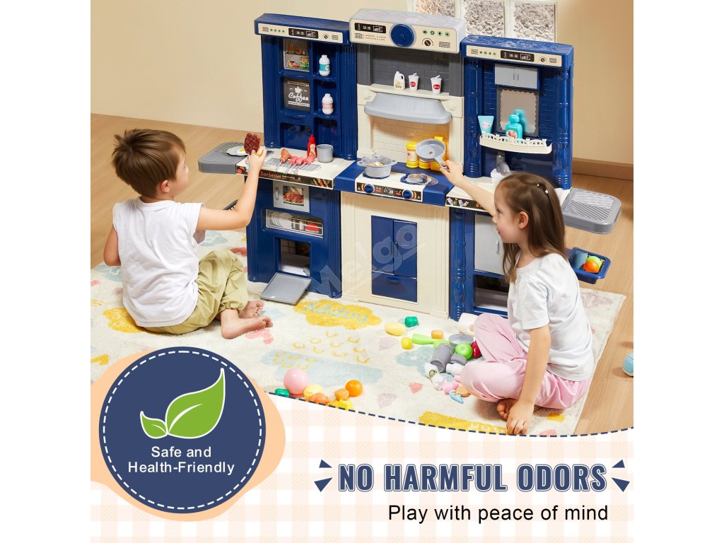 Naše dětská kuchyňka je vyrobena ze zdravotně nezávadných materiálů, neobsahuje BPA a je zdravotně nezávadná, což zaručuje bezpečnou hru. Je vyrobena tak, aby vydržela, takže si můžete být jisti, že si vaše dítě hraje s kvalitní a odolnou hračkou.
