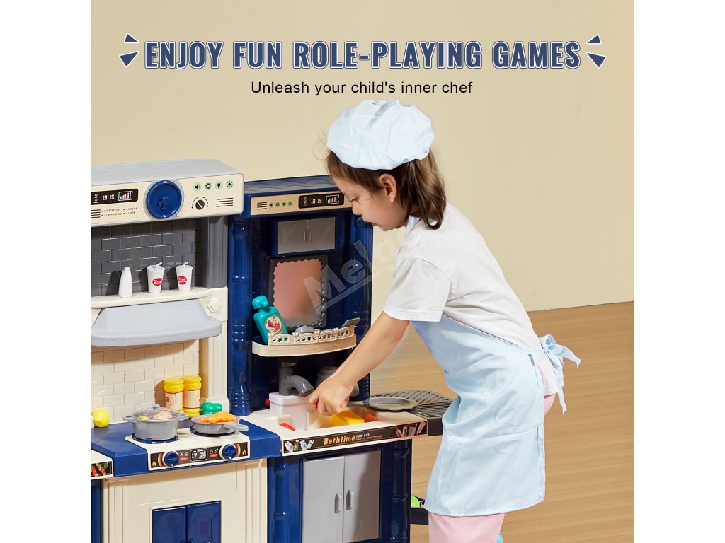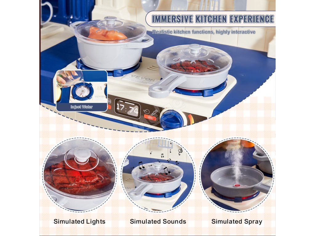Užijte si dětskou kuchyňku, která ožívá realistickými zvuky a světly. Funkce, jako je syčící sporák a funkční spotřebiče, činí hru poutavou a dynamickou, podporují kreativitu a praktické dovednosti a zároveň podporují sociální interakci.
