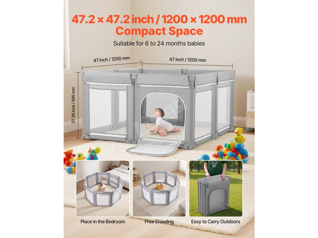 Hrací deka VEVOR o rozměrech 47,2 x 47,2 palce (1200 x 1200 mm) kombinuje bezpečnost a zábavu a vytváří prostorný a bezpečný prostor pro vaše dítě. Díky rychlému sestavení a skládací konstrukci je ideální pro vnitřní i venkovní použití - poskytuje vašemu dítěti prostor pro hraní, zkoumání a růst, zatímco vy si užíváte volné ruce.