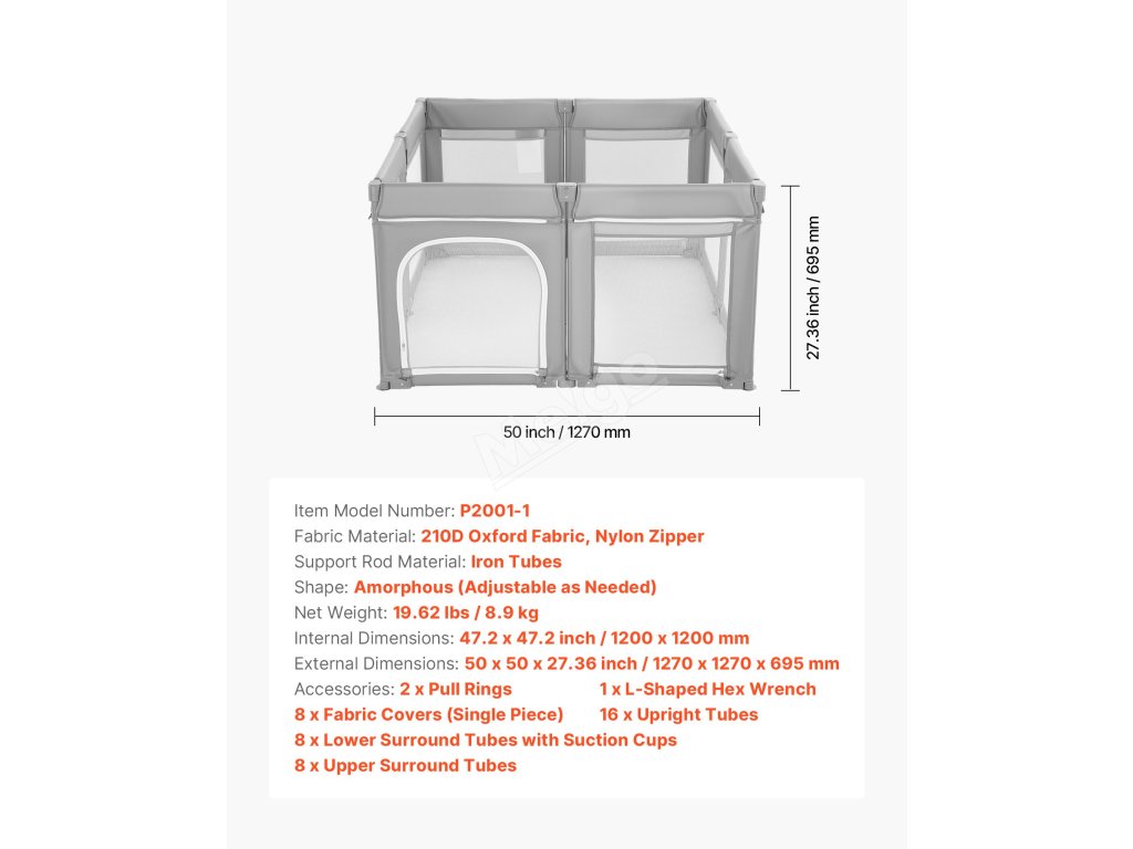 Naše ohrádka pro miminka a batolata má snímatelný potah z tkaniny Oxford 210D, který lze prát v pračce, takže čištění je jednoduché a bezproblémové. Udržujte hrací prostor svého dítěte stále svěží a čistý.