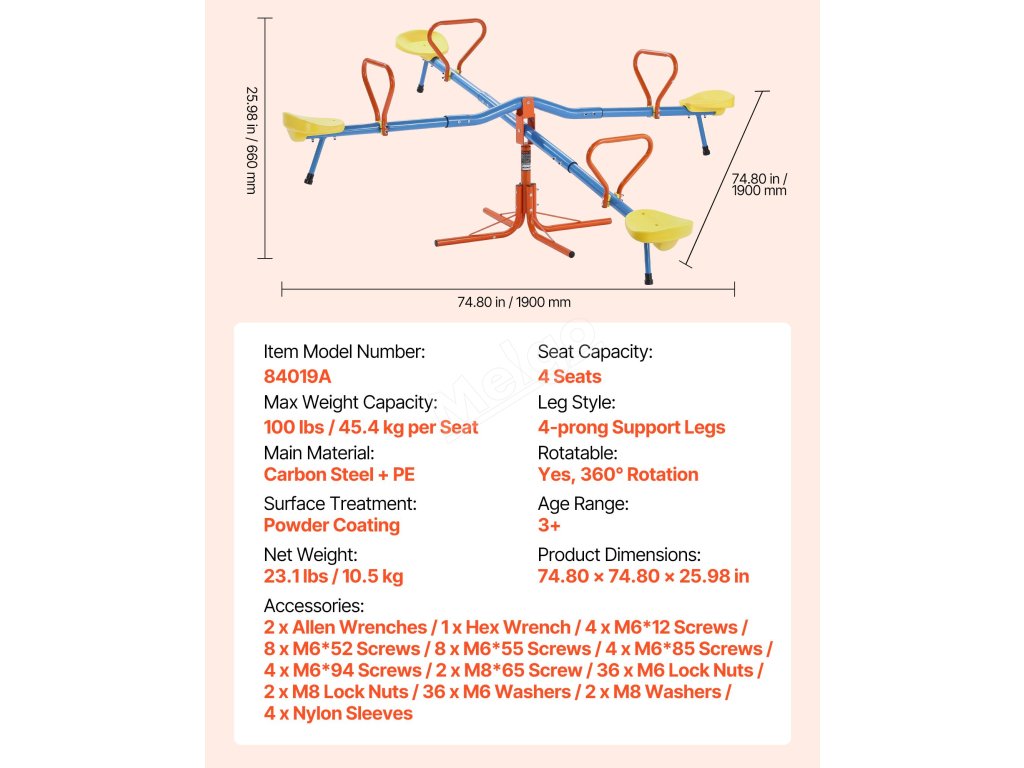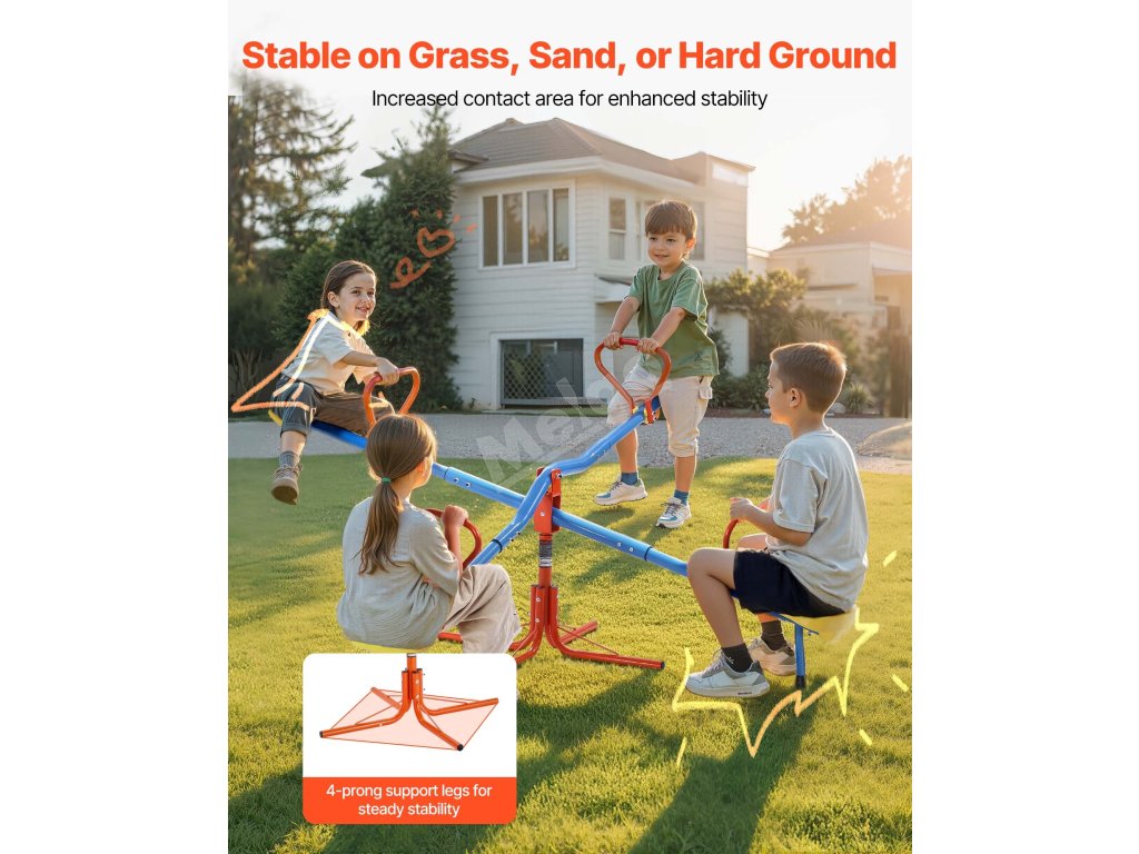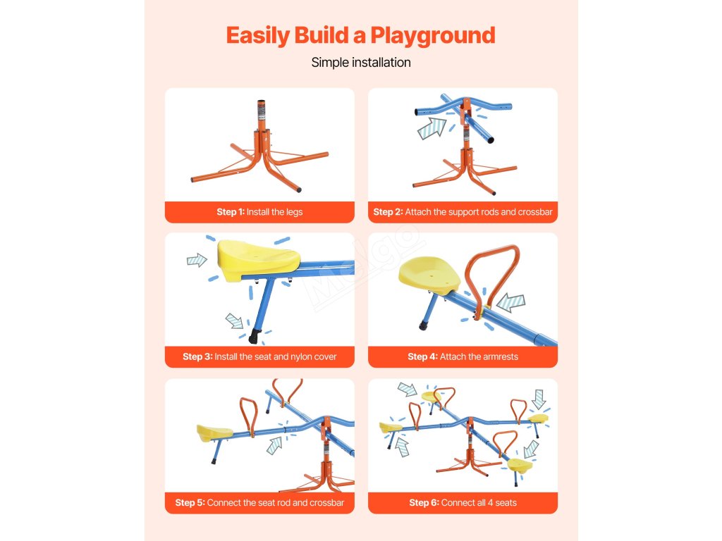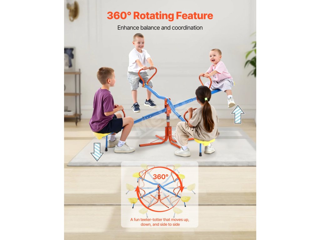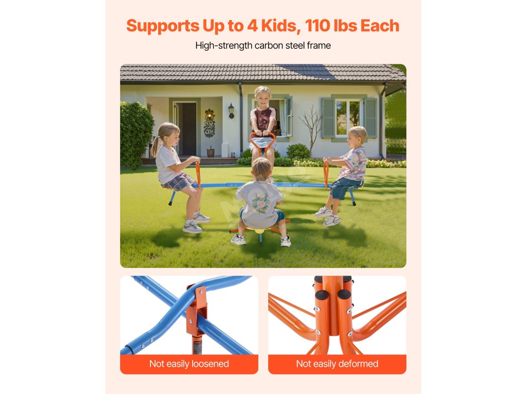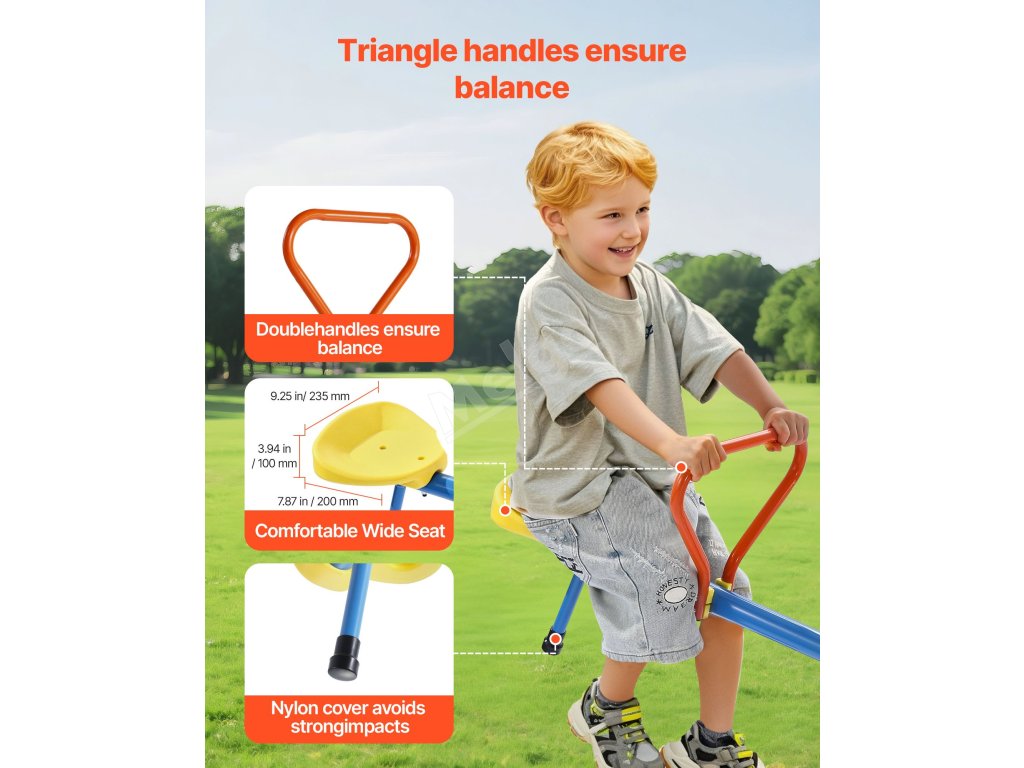 Každé sedadlo je vyrobeno z odolné uhlíkové oceli a unese až 110 liber/49,9 kg. Konstrukce otáčející se o 360° umožňuje dětem skákat nahoru a dolů a zároveň se otáčet, což zvyšuje zábavu a vzrušení ze hry!