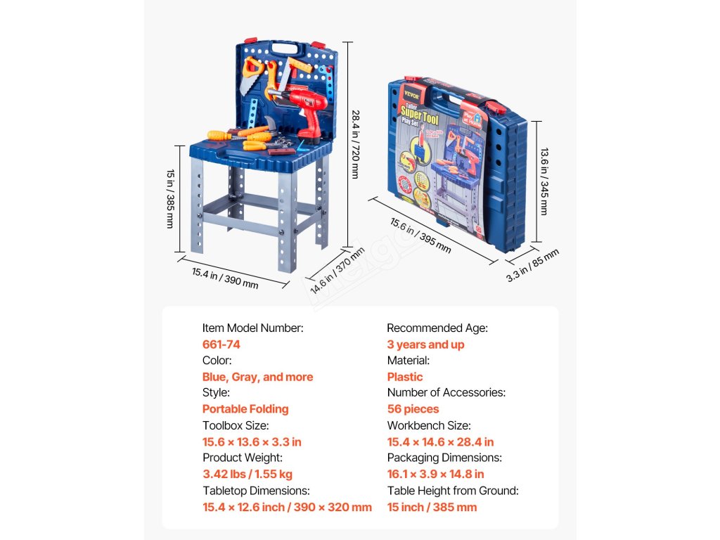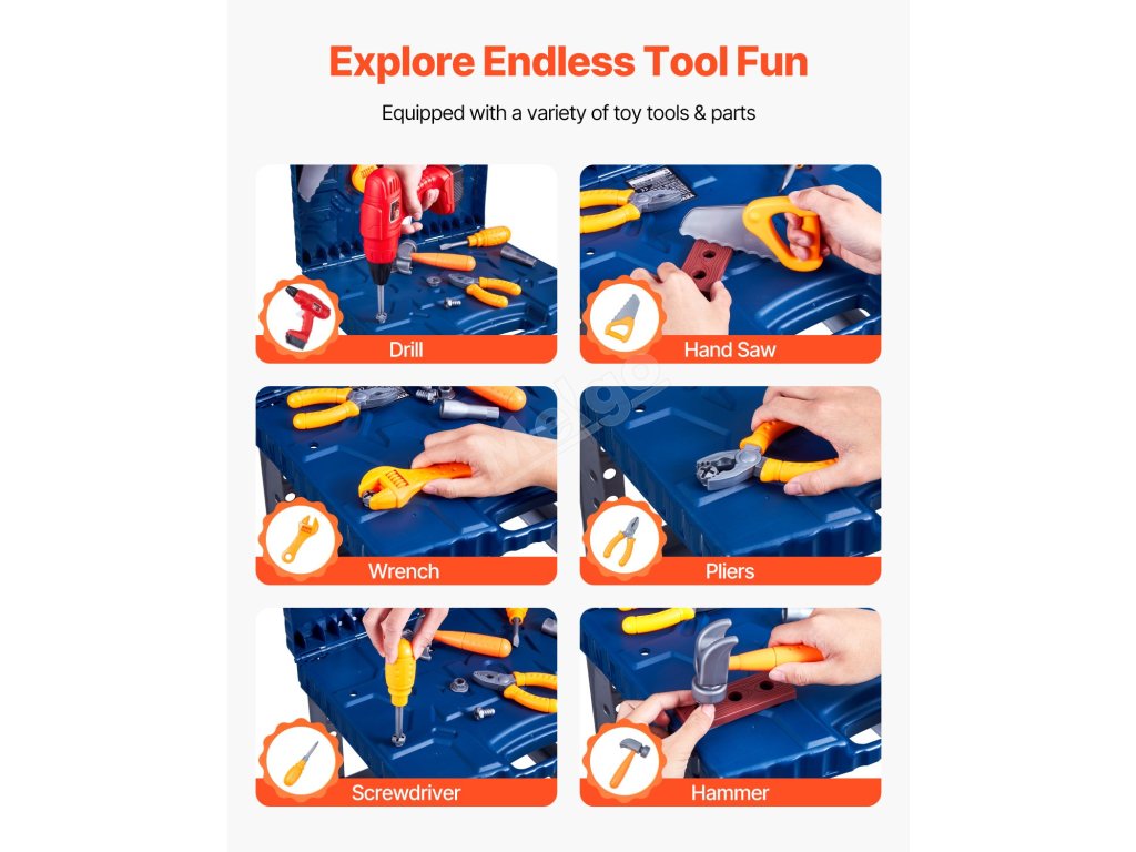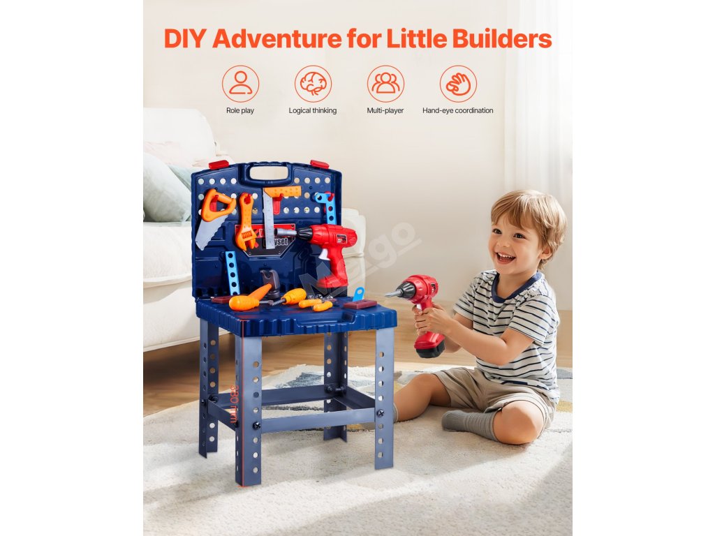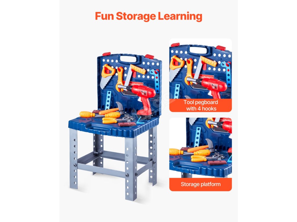 Tento dětský pracovní stůl je vybaven základním nářadím, jako je klíč, pila, šroubovák a další! Děti mohou objevovat svět nářadí, zlepšovat koordinaci rukou a očí a zároveň se bavit a objevovat radost z řemeslné práce.