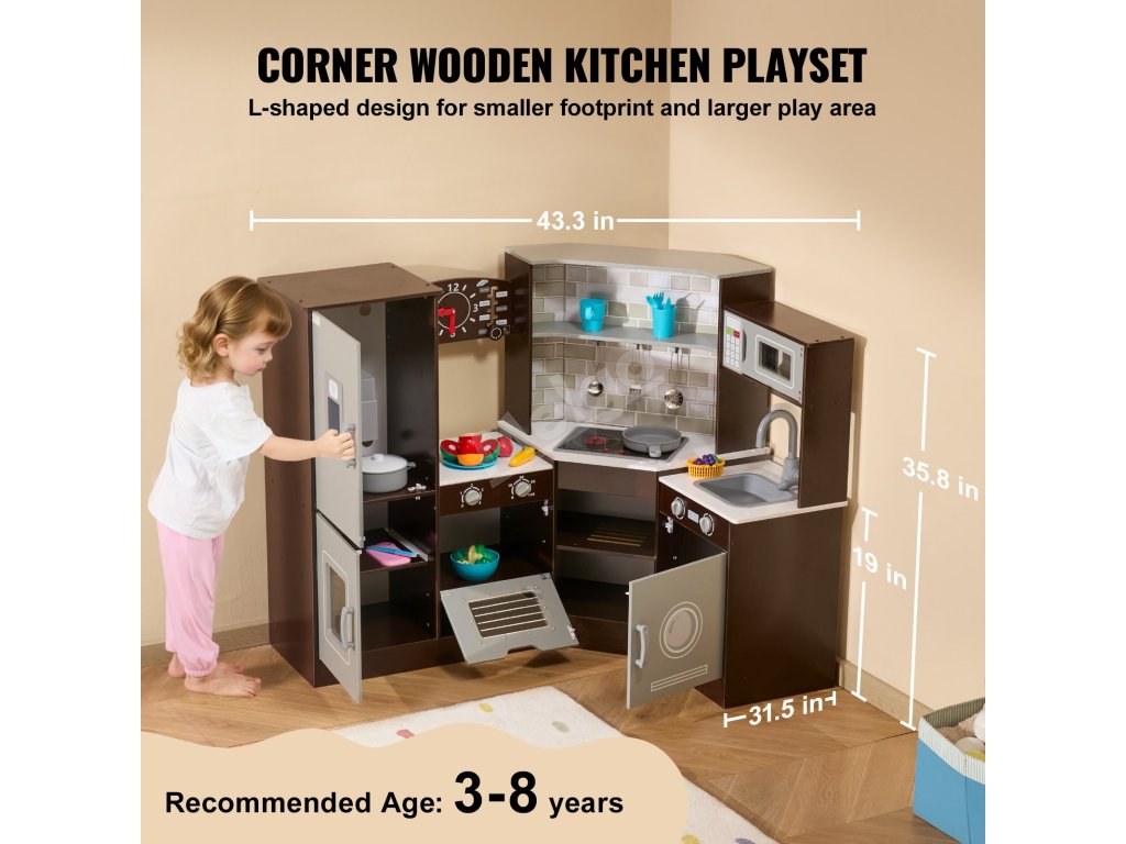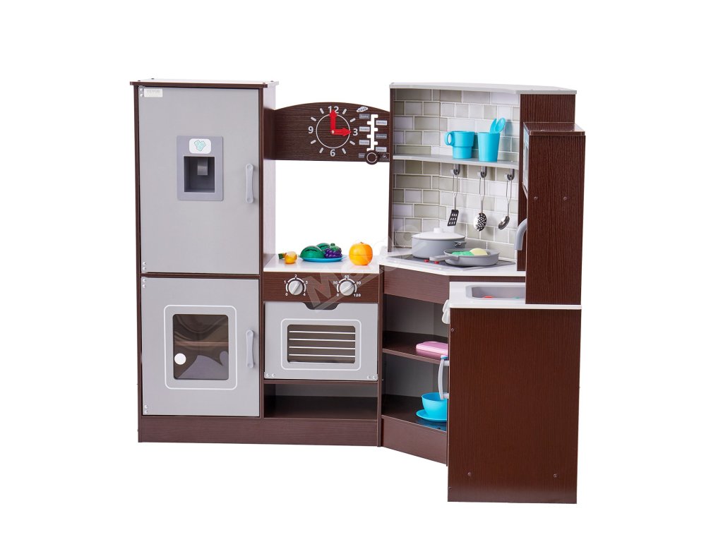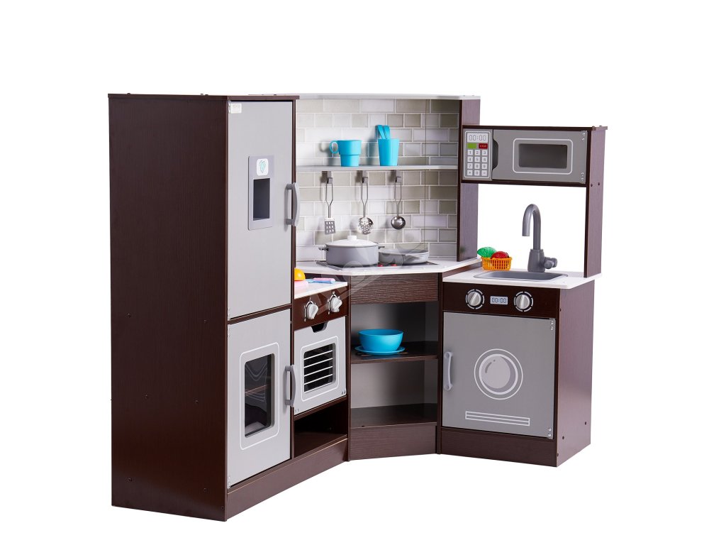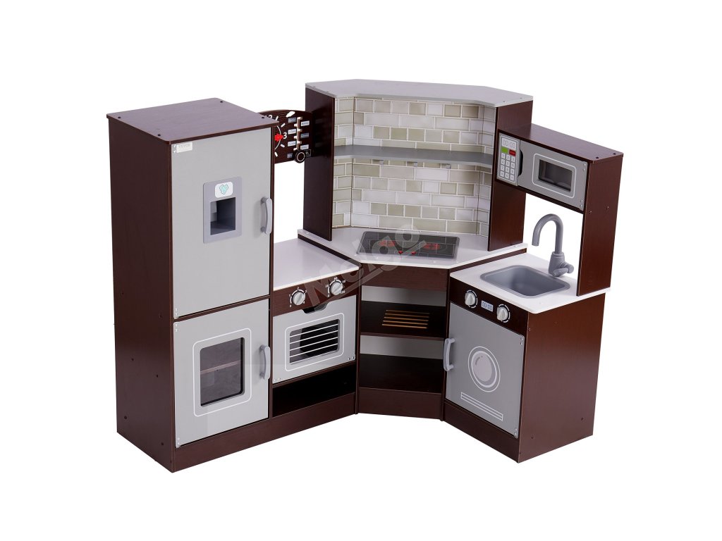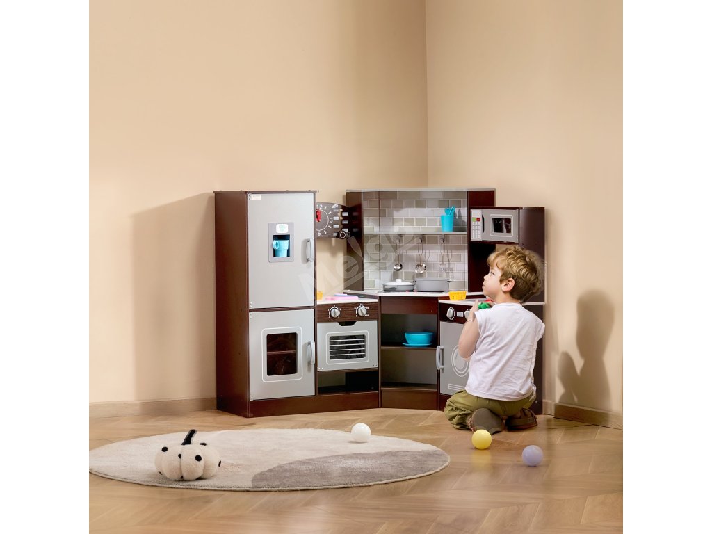 Dětská rohová kuchyňka ze dřeva s troubou, mikrovlnkou a osvětlením