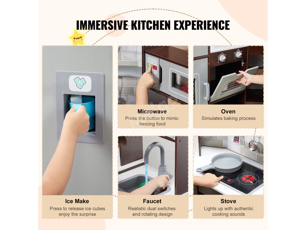 Užijte si dětskou kuchyňku, která ožije realistickými zvuky a světly. Díky funkcím, jako je syčící sporák a funkční spotřebiče, je hra poutavá a dynamická, podporuje kreativitu a praktické dovednosti a zároveň podporuje sociální interakci.