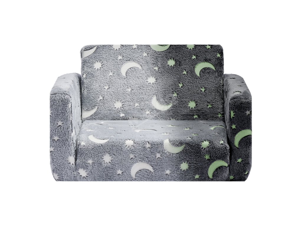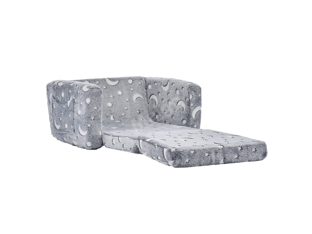 Dětská rozkládací pohovka 2v1 M s 28D pěnou, flanel, svítící šedá
