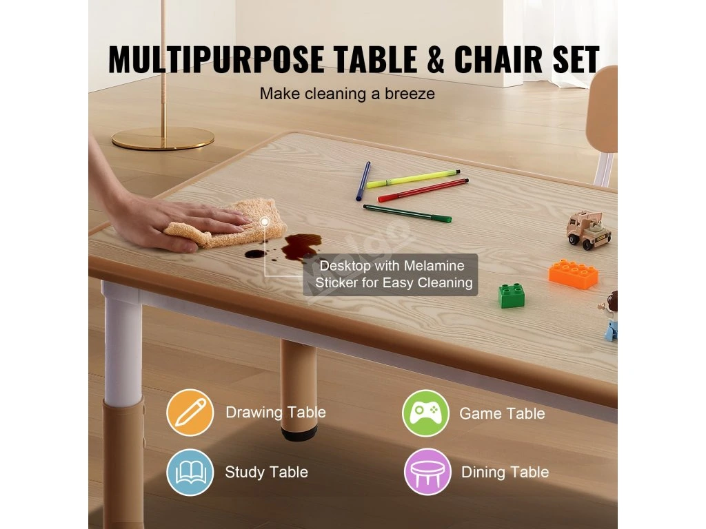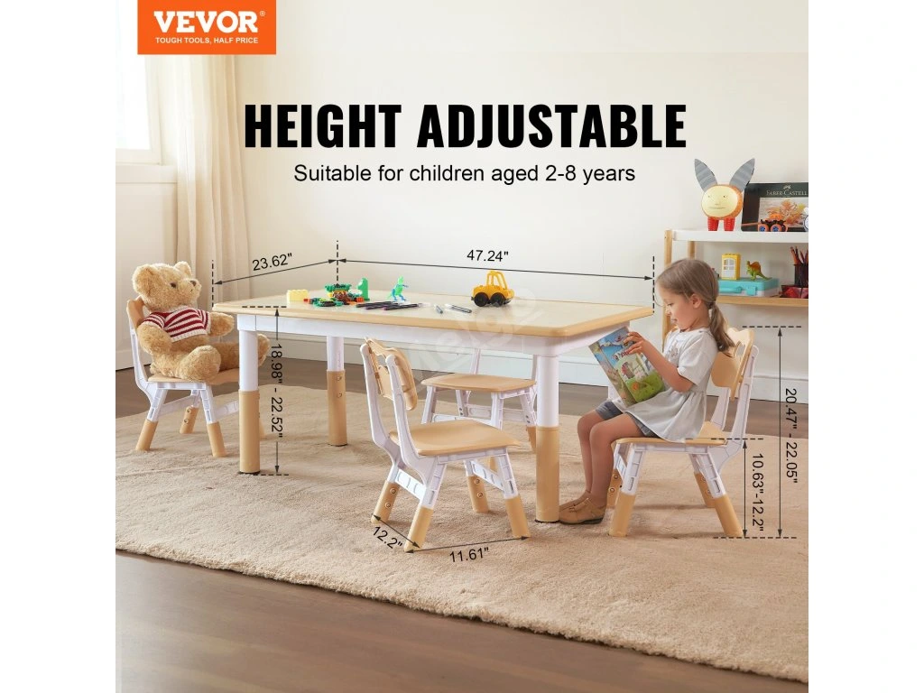Náš výškově nastavitelný dětský stůl a 4 židle jsou vhodné pro děti ve věku 2-8 let. Je navržen s ohledem na jejich pohodlí a držení těla. Ideální pro použití v obývacích pokojích, hernách, denních centrech, čítárnách a dětských pokojích pro tvoření, hraní, kreslení, čtení a svačinu.