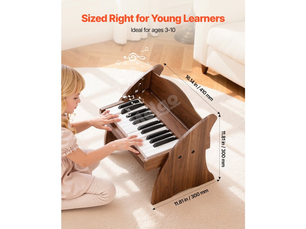 Toto dětské dřevěné piano nabízí tichý a praktický způsob, jak zkoumat zvuky. Přirozeně zapadá do rodinného života, snadno se sestavuje, jednoduše se používá a je vždy připraveno, když dítě pocítí zvědavost zahrát pár tónů.