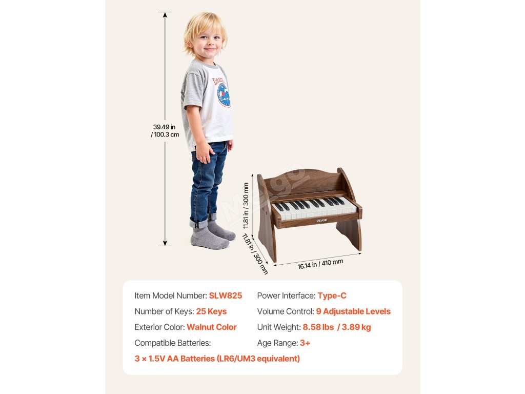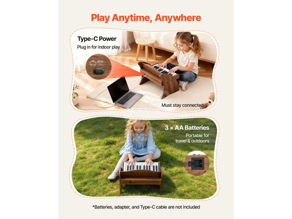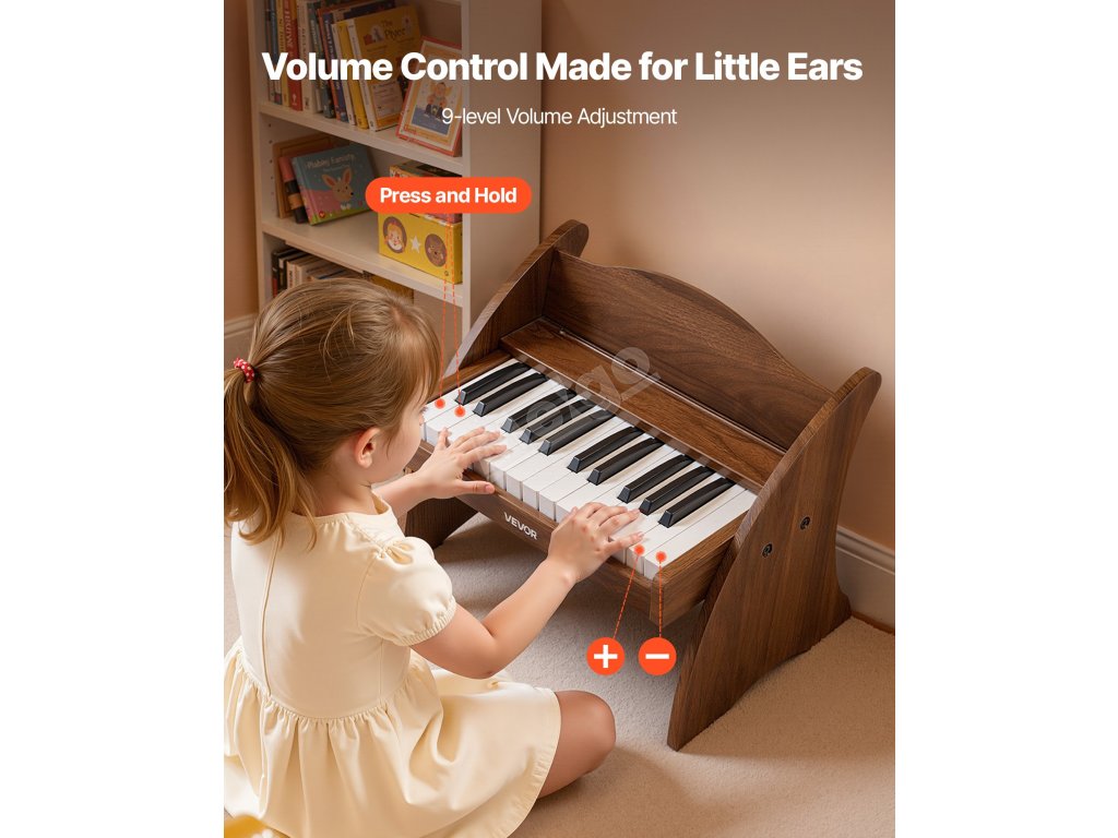 Dětské klávesy 25 kláves, dřevěné, realistický zvuk, dvojité napájení