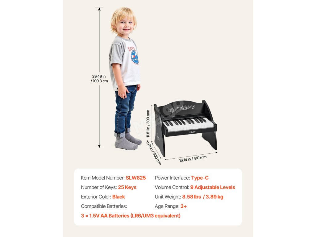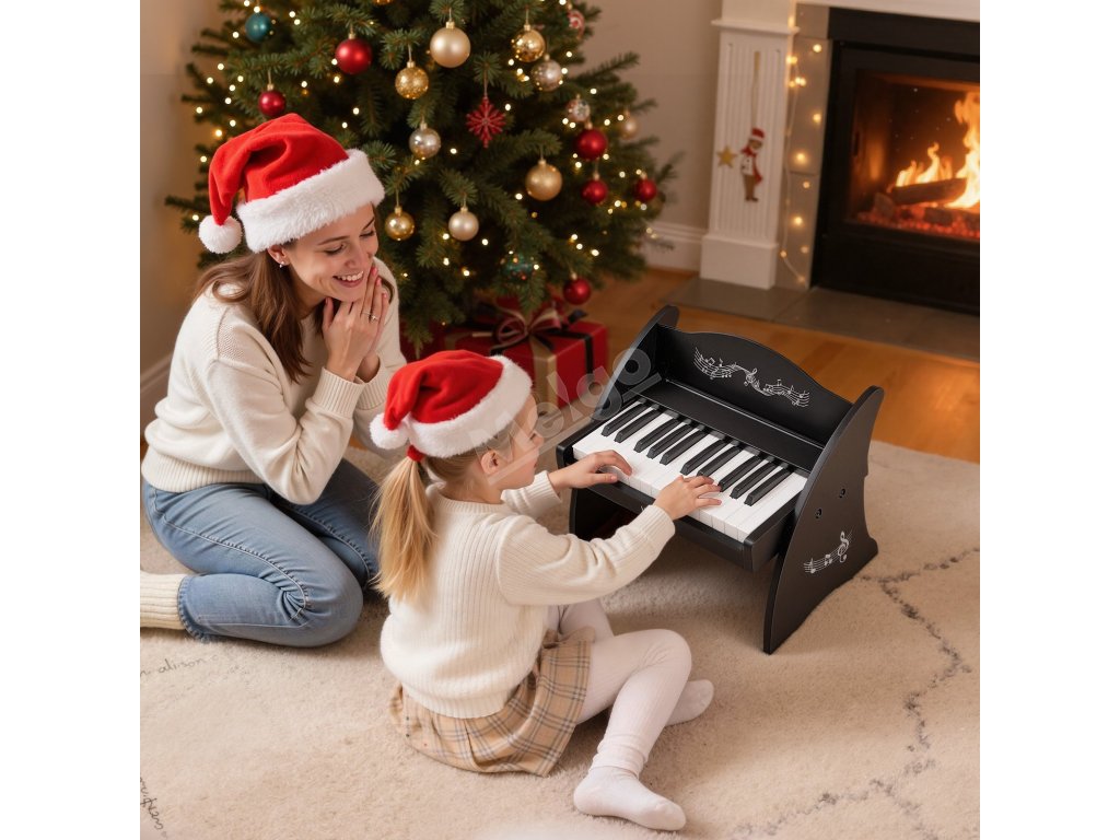Dětské pianino 25 kláves, dřevěné, reálný zvuk, duální napájení