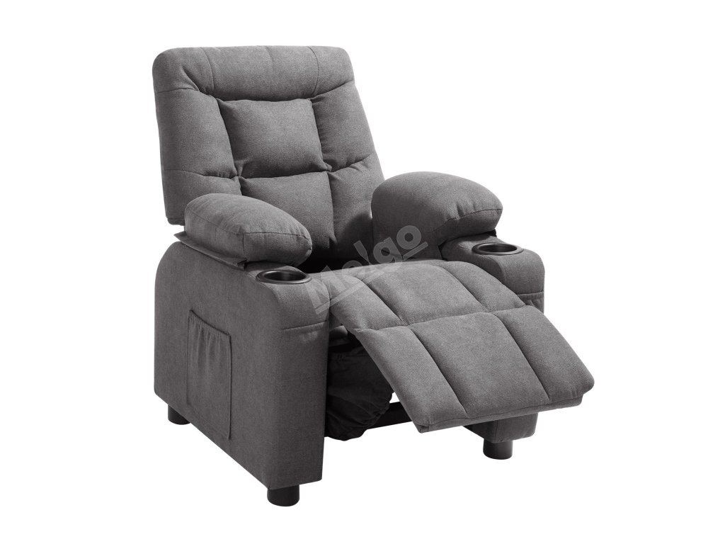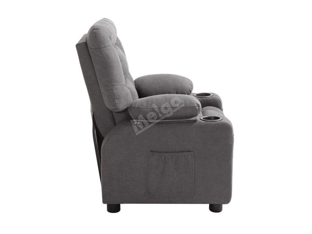 Dětské sklápěcí křeslo 107°–126° opěradlo, držáky, s opěrkou, šedé