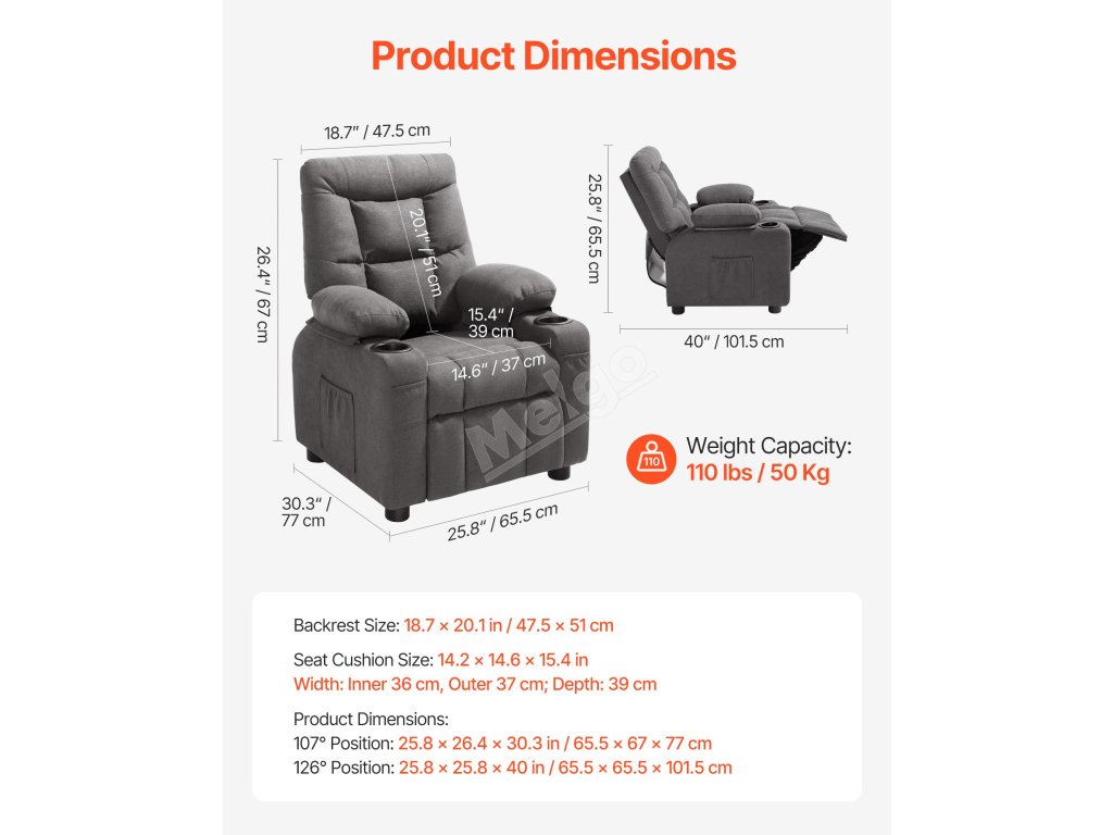 | Nastavitelný úhel opěradla | 107°-126 |