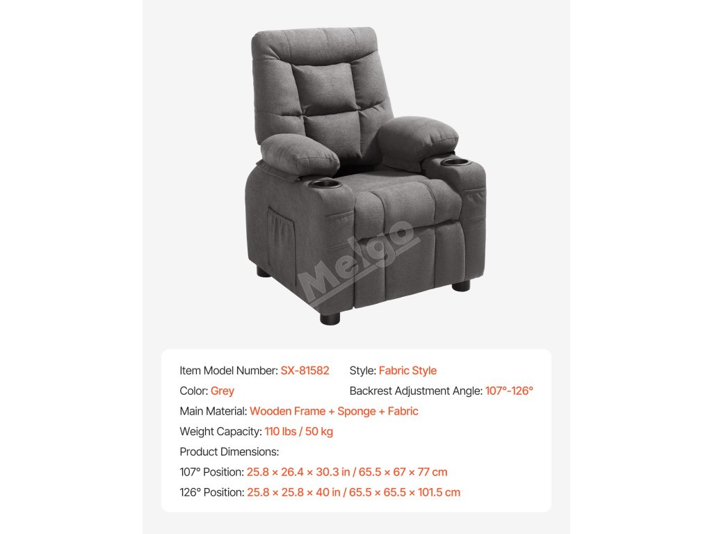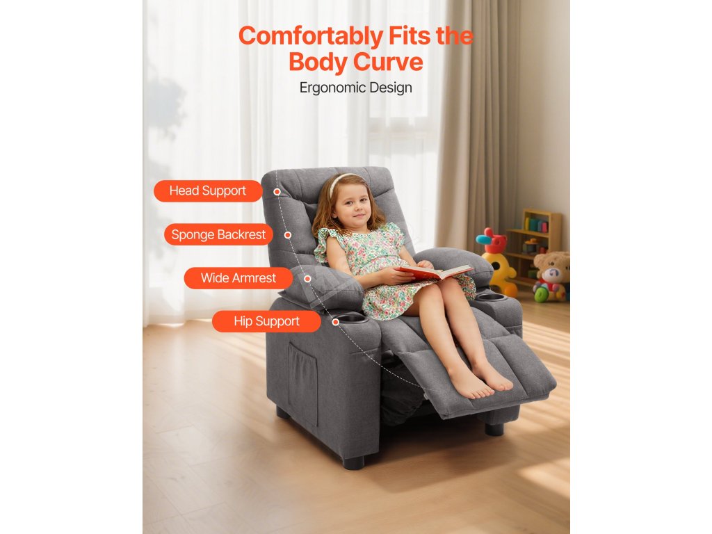 Tato židle má nastavitelné opěradlo a pevný dřevěný rám, který zajišťuje stabilitu. Měkká polyesterová tkanina a pěnové polstrování poskytují pohodlí a prodyšnost. Je ideální do pracoven, obývacích pokojů, dětských pokojů a dětských pokojů.
