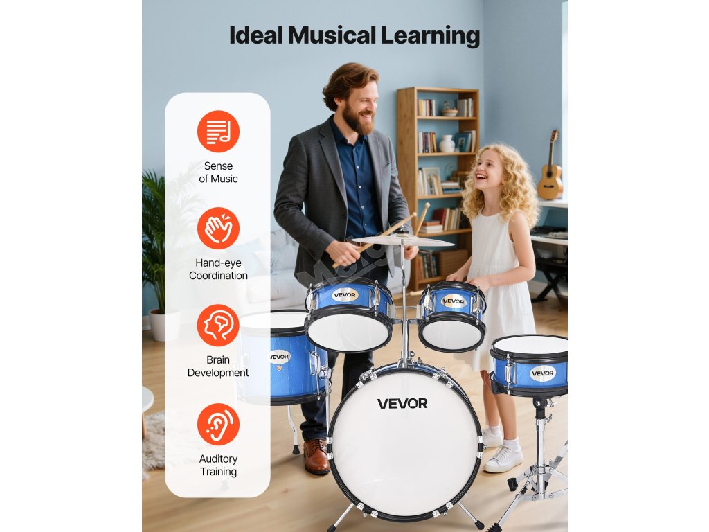 Odpověď: Tato bicí souprava je speciálně navržena pro děti a začátečníky, kterým usnadňuje začít se učit a užívat si bubnování.