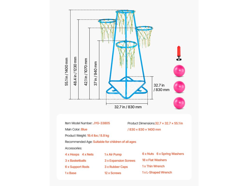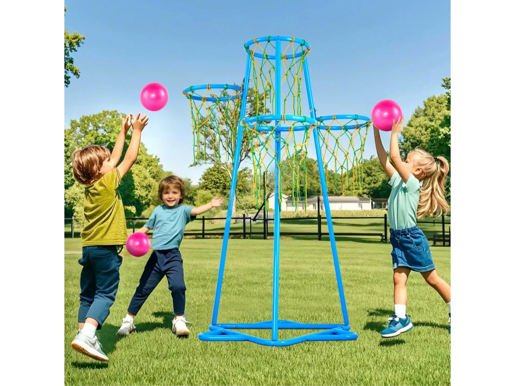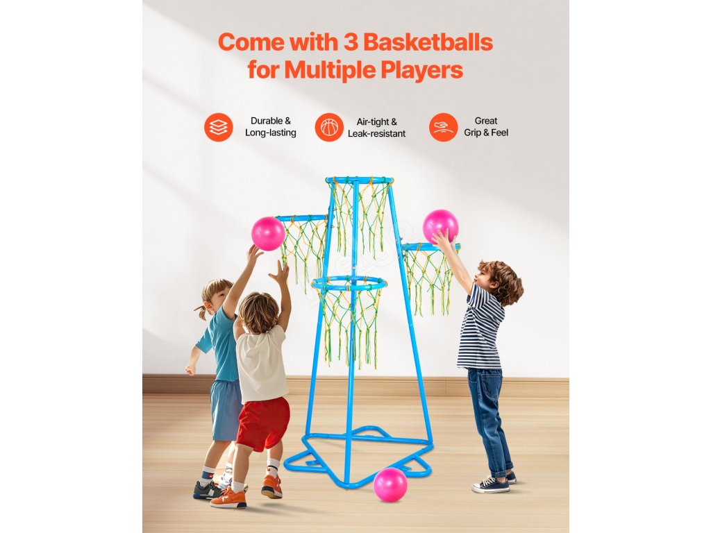 Dětský basketbalový koš se 4 obručemi, nastavitelná výška, 3 míče