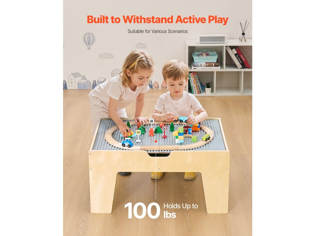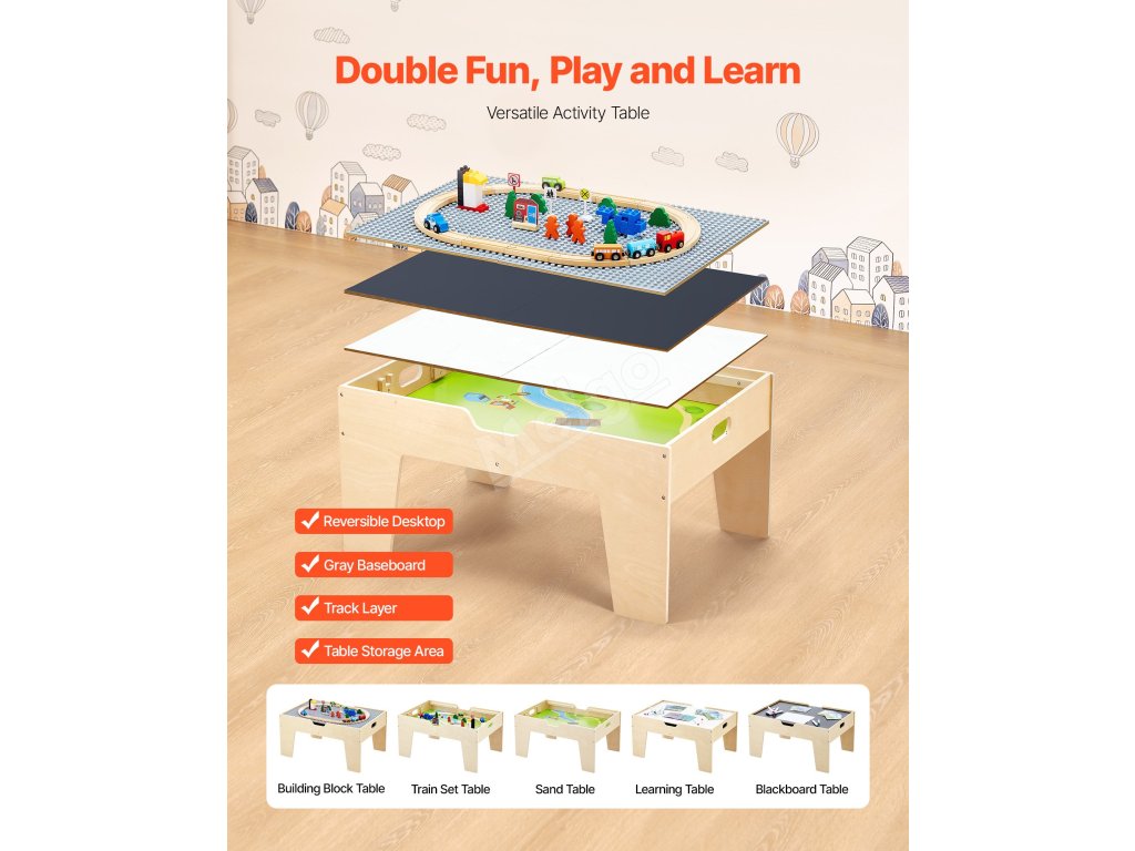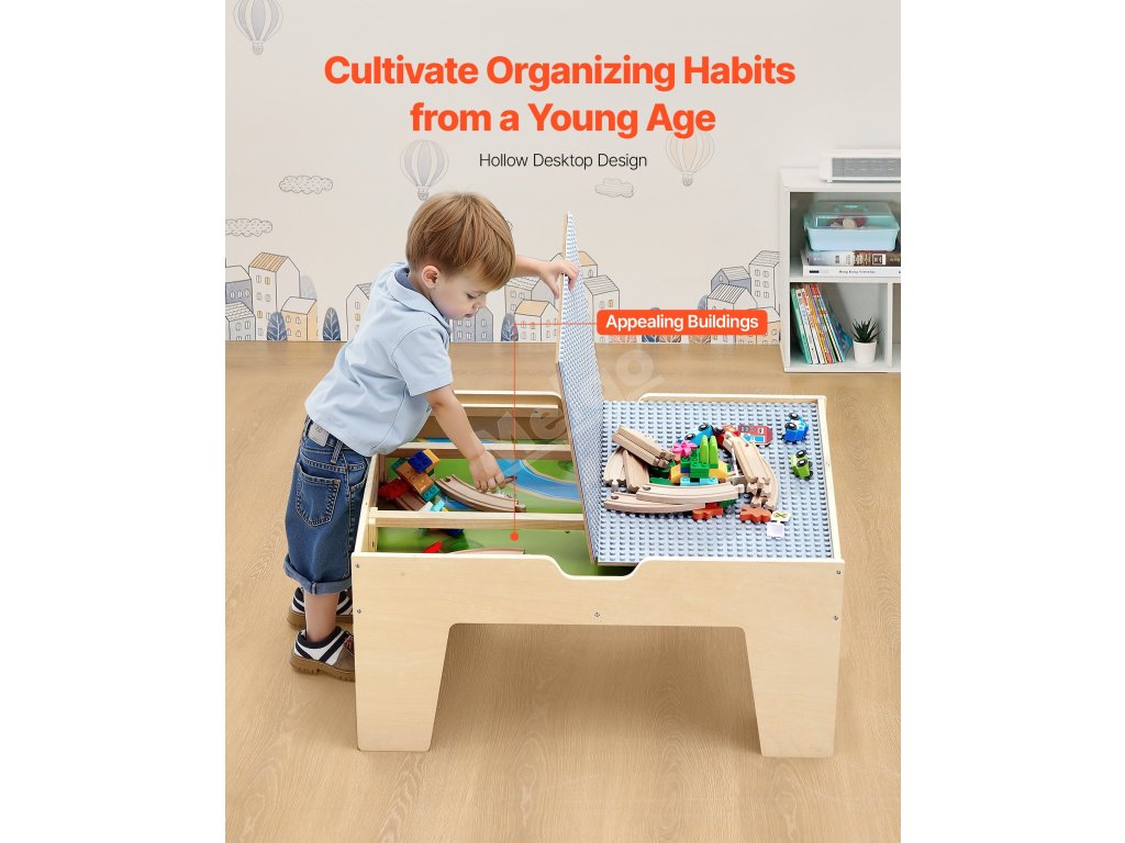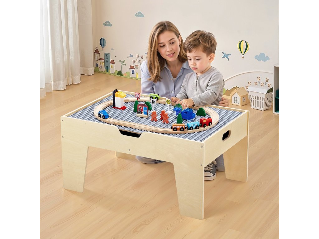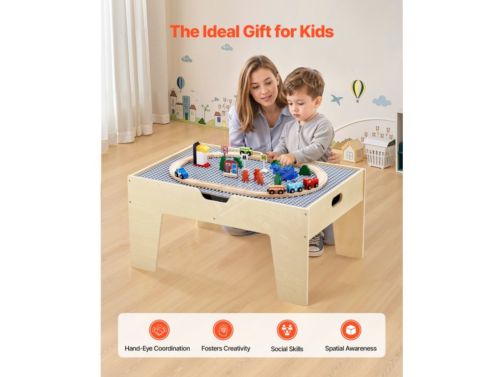Tento dřevěný stůl pro děti je ideálním dárkem k Vánocům, narozeninám a dalším svátkům. Děti si při hře mohou rozvíjet dovednosti, jako je koordinace ruka-oko, prostorové plánování, sociální interakce, představivost a organizace.
