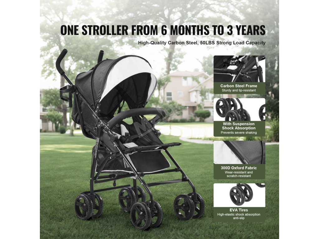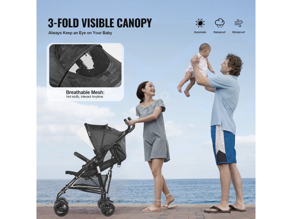 Tento přenosný kočárek je skvělým společníkem pro rodiče na cestách. Je lehký a přenosný, s robustním rámem, který poskytuje bezpečnou ochranu pro vaše dítě. Pneumatiky EVA tlumící nárazy jsou vhodné do různých terénů. Cestování s dítětem je tak snadné a bezpečné.