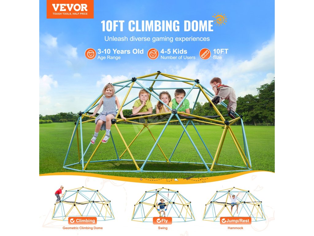 Dětský lezecký geodom 10FT s hamakem a houpačkou, 3–10 let, 750LBS