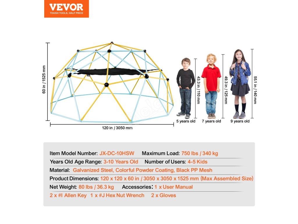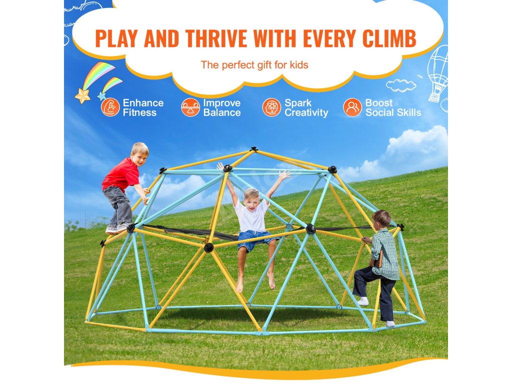 Součástí naší prolézací kopule je houpačka a houpací síť, které dětem umožňují zažít zábavu při lezení, létání, skákání a odpočinku. Velikost 10 stop je vhodná pro 4-5 dětí ve věku 3-10 let. Ideální pro domácí hraní ve dnech, kdy není možné jít ven. Vhodné také pro použití ve školce a na dětském hřišti.