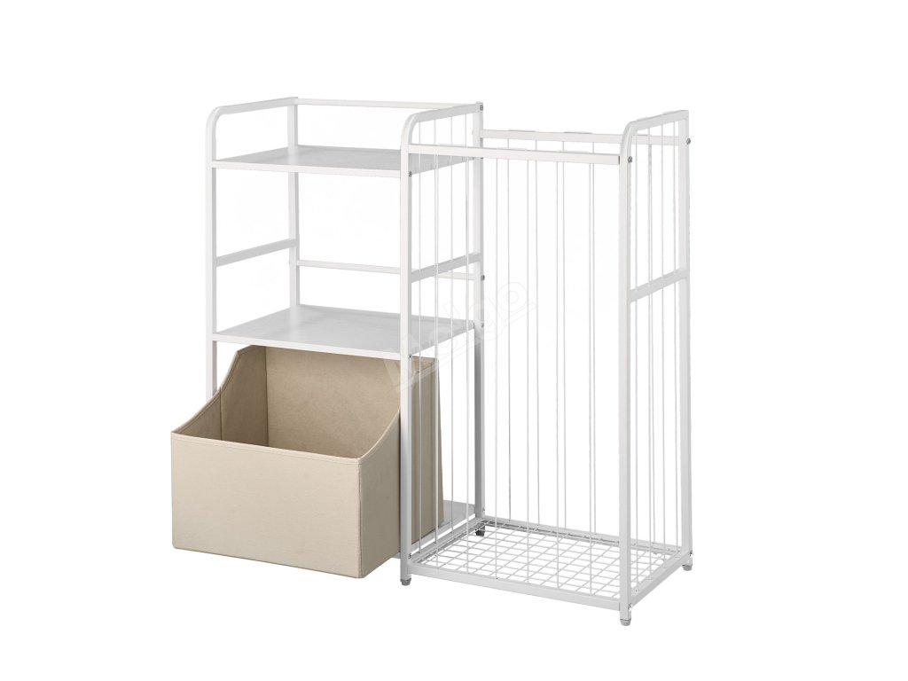 Dětský regál na knihy a hračky 2-patrový s látkovým košem, bílý