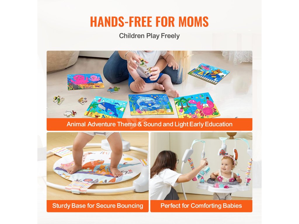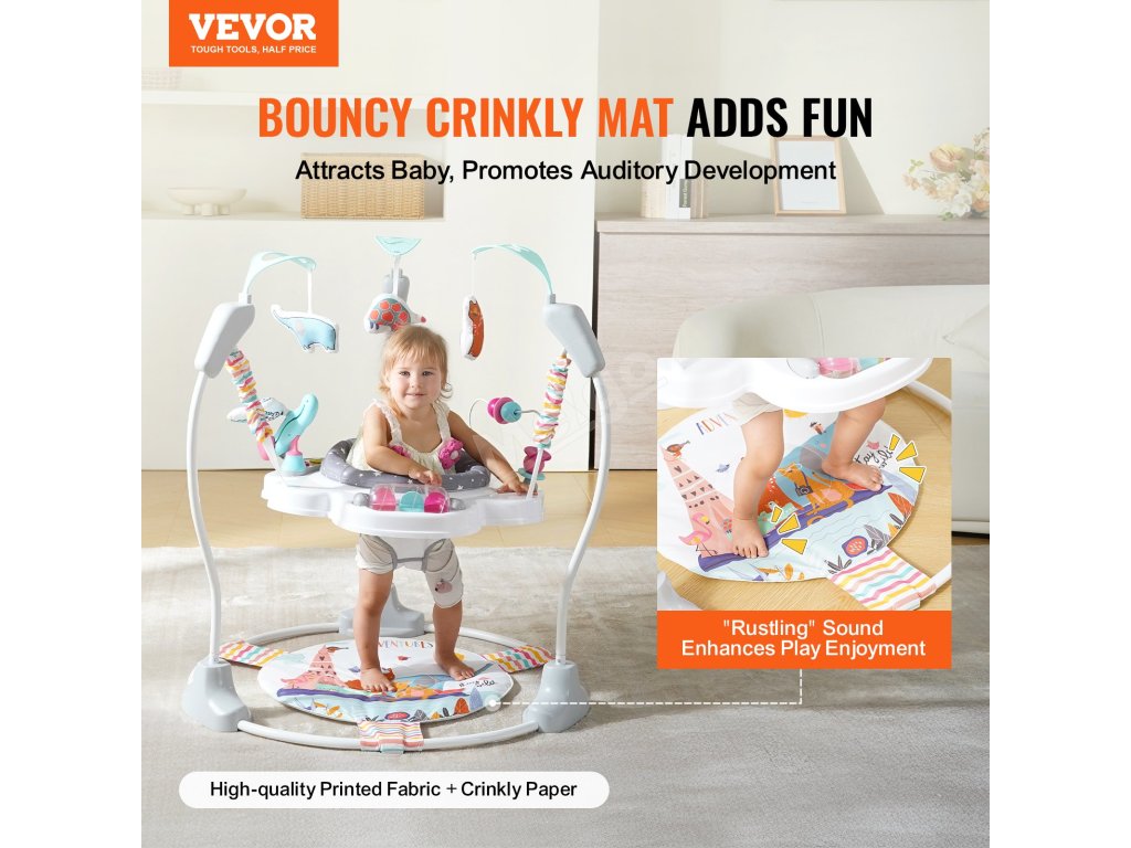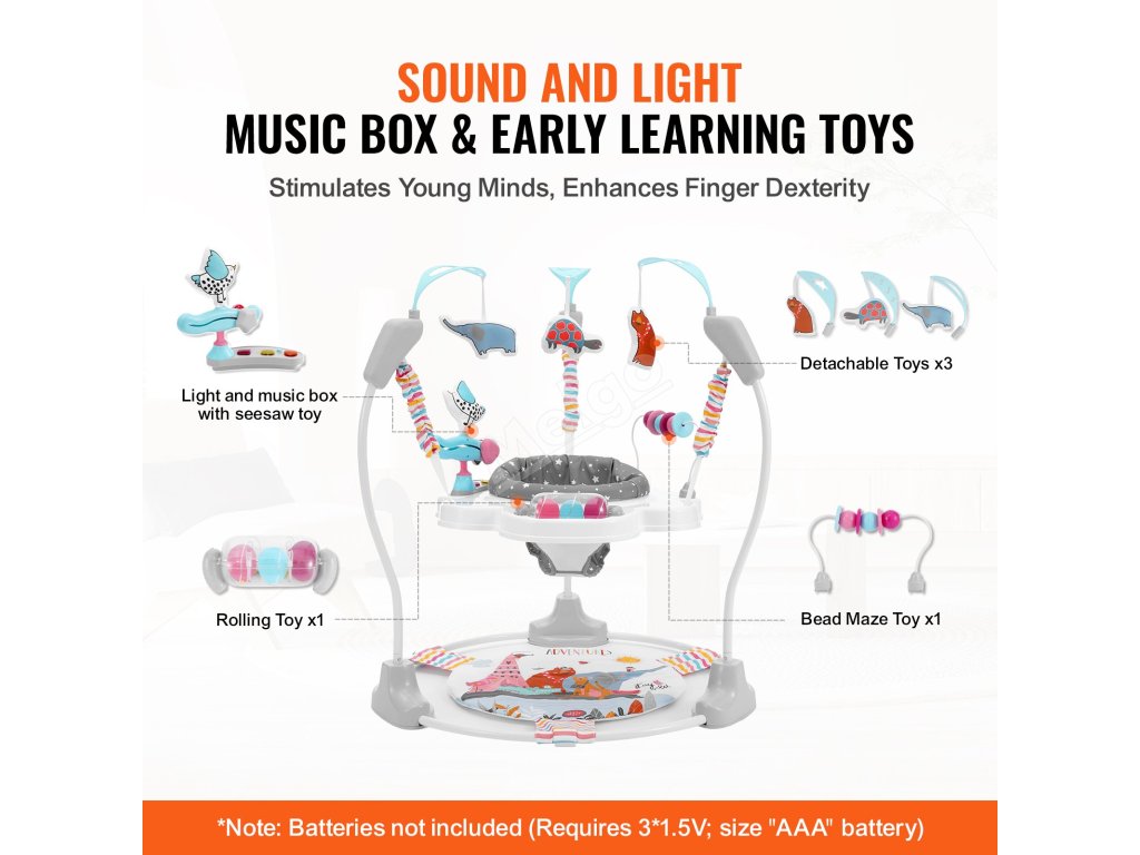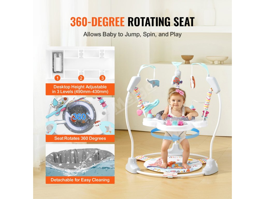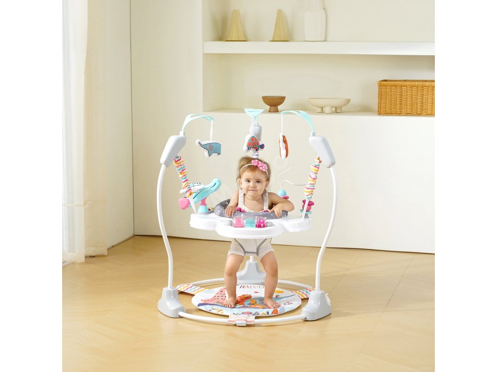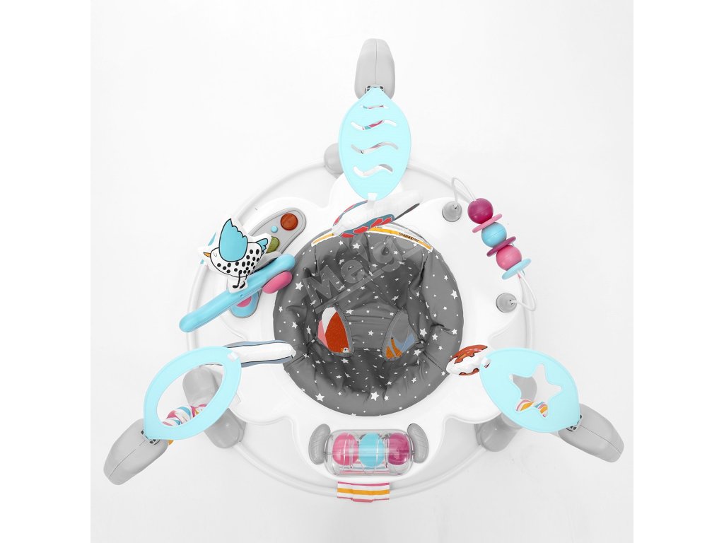 Dětský skákací otočný stojan 360°, nastav. výška, hračky, světla 6+měs.