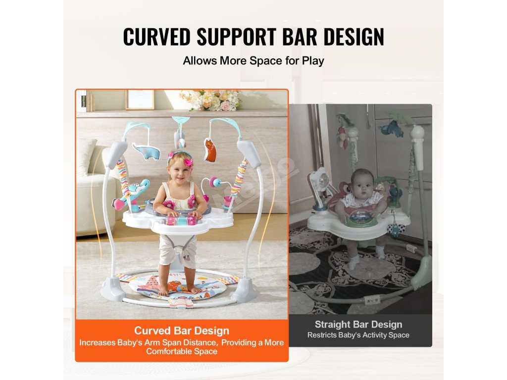 Zakřivená konstrukce tyče poskytuje více prostoru pro aktivity a její zesílená spodní část zajišťuje stabilitu. Díky silnějšímu odrazu je tato dětská jumperoo Spaceaver chytrou volbou pro maminky.