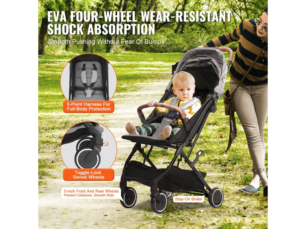 Naše kočárky mají nastavitelnou opěrku zad a nohou, aby vyhovovaly vašim potřebám. Snadno se skládá jednou rukou a je vybaven odpružením čtyř kol EVA, které bez námahy zvládne různé terény. Se schopností sloužit od 0 do 3 let bez nutnosti výměny.