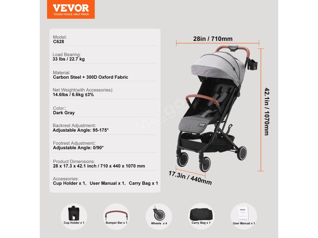 | Rozměry výrobku | 28 x 17,3 x 42,1 palců / 710 x 440 x 1070 mm |