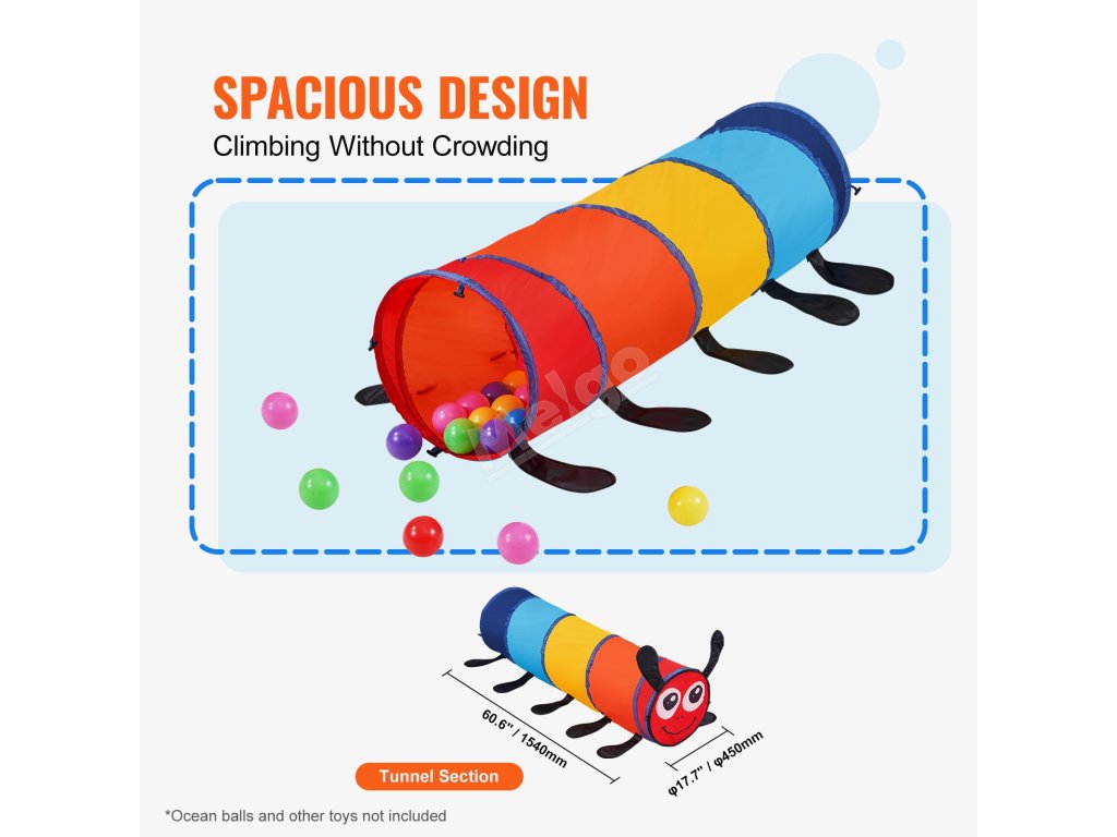 Dětský sklápěcí hrací tunel housenka, barevný, pro batolata a zvířata