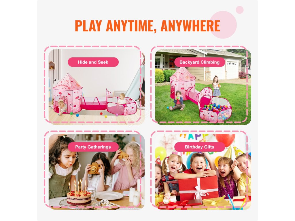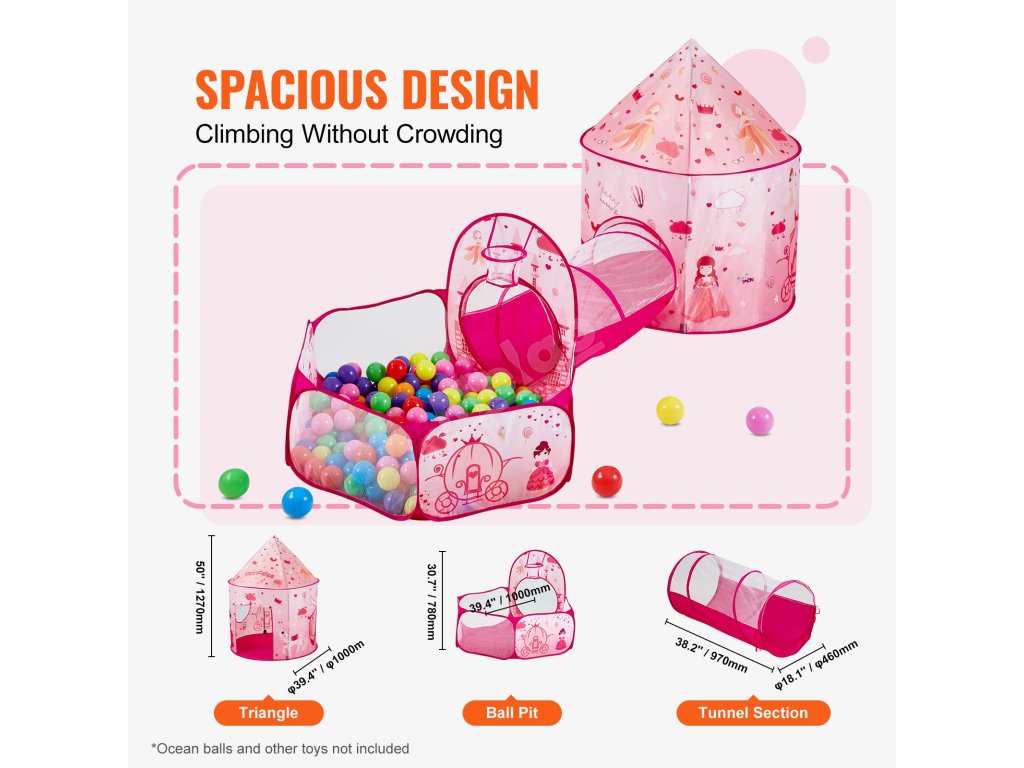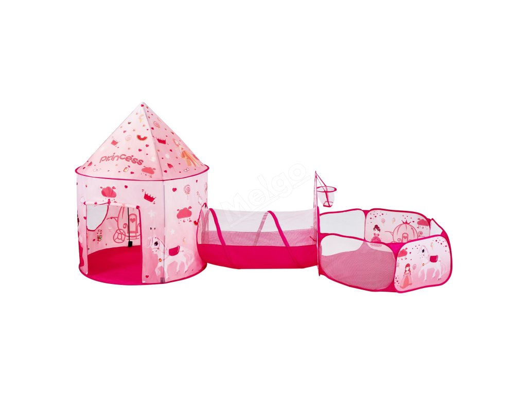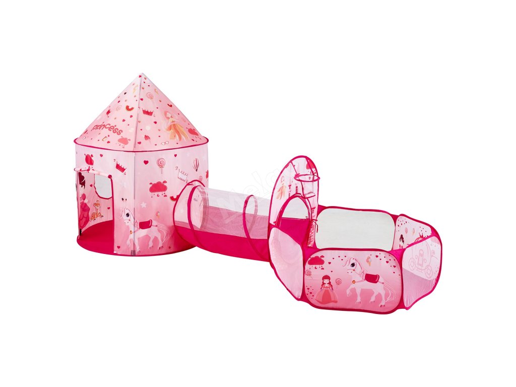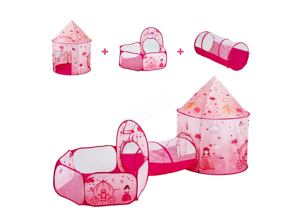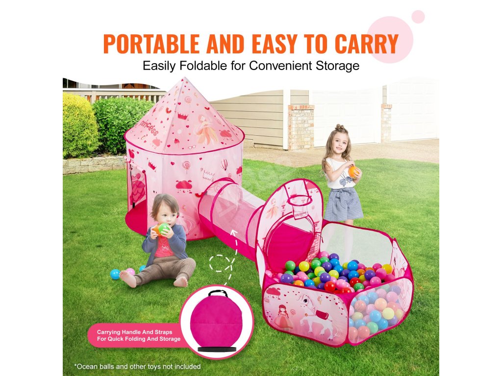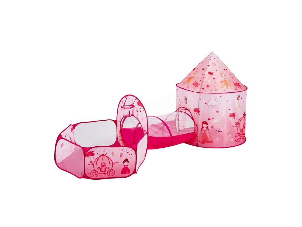 Dětský stan na hraní 3 v 1 s tunelem, přenosný, magenta, s taškou