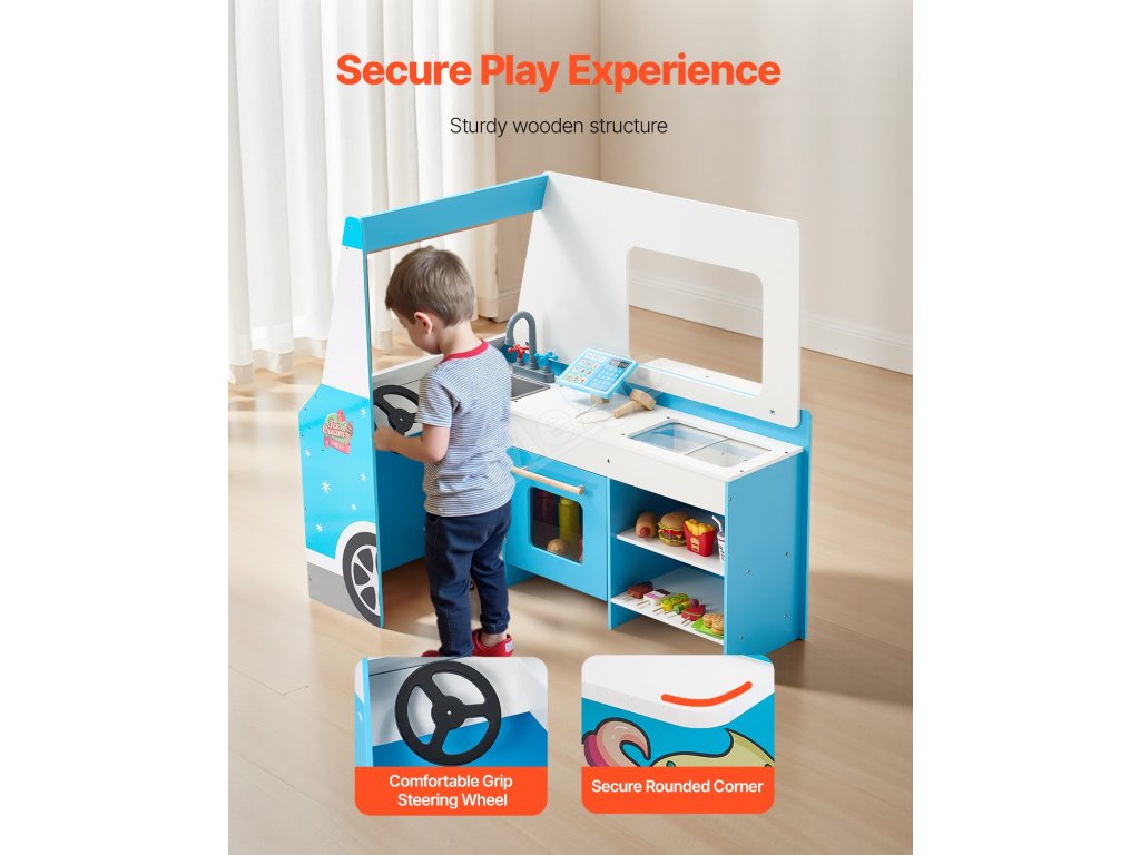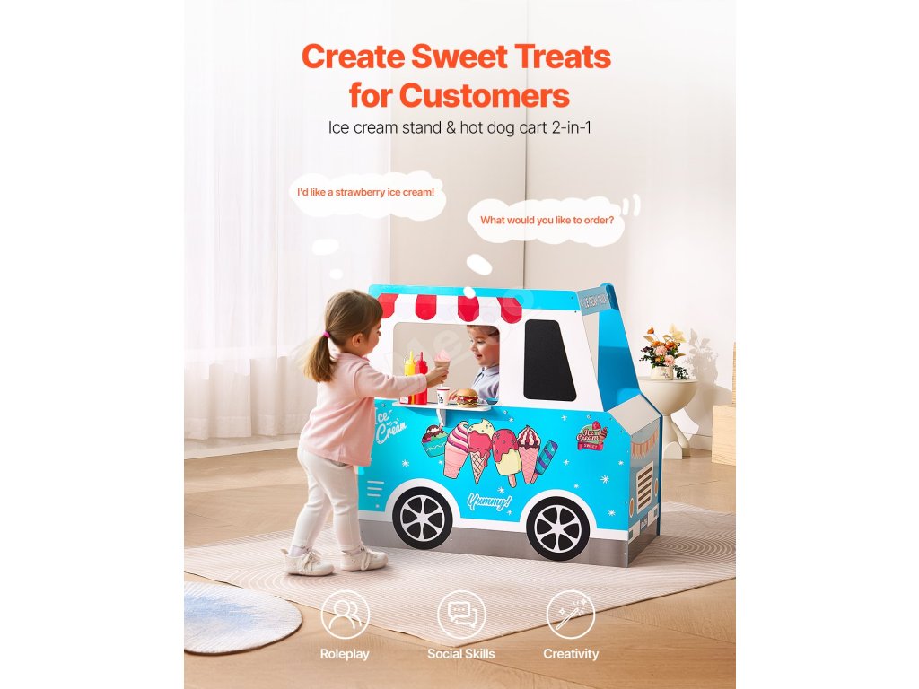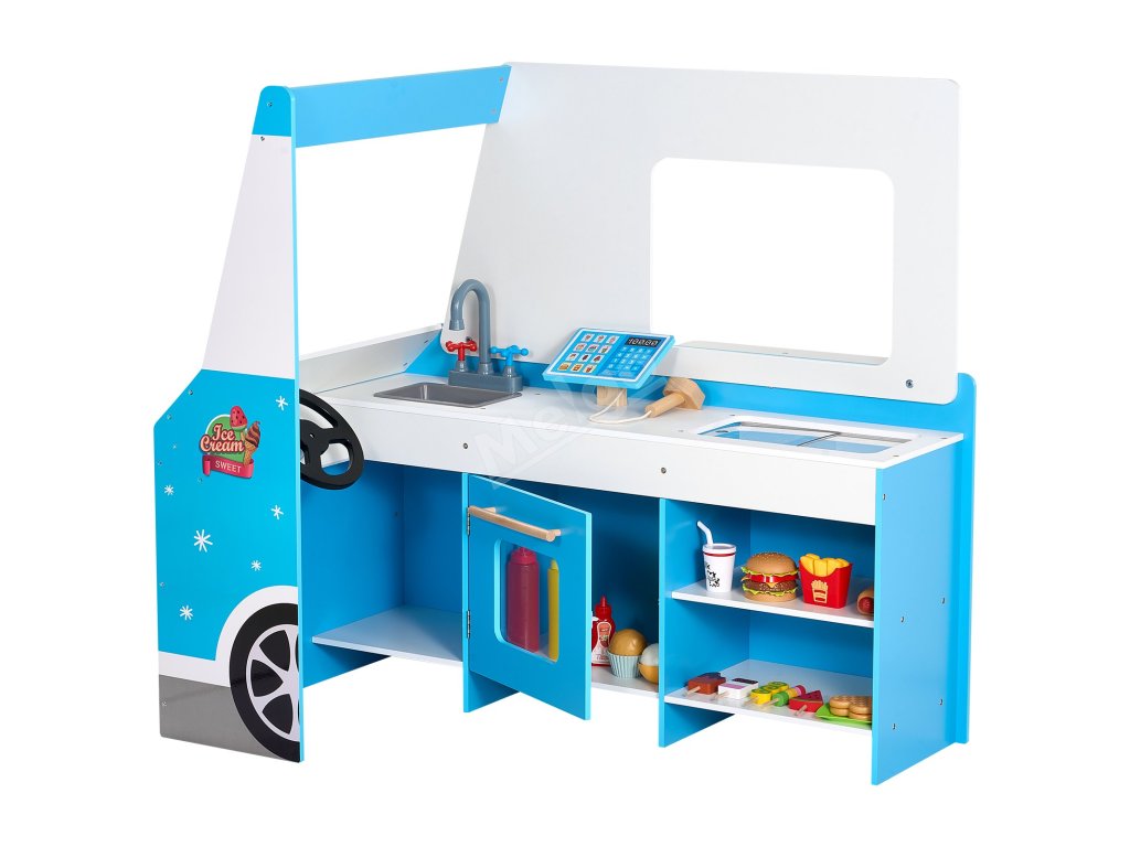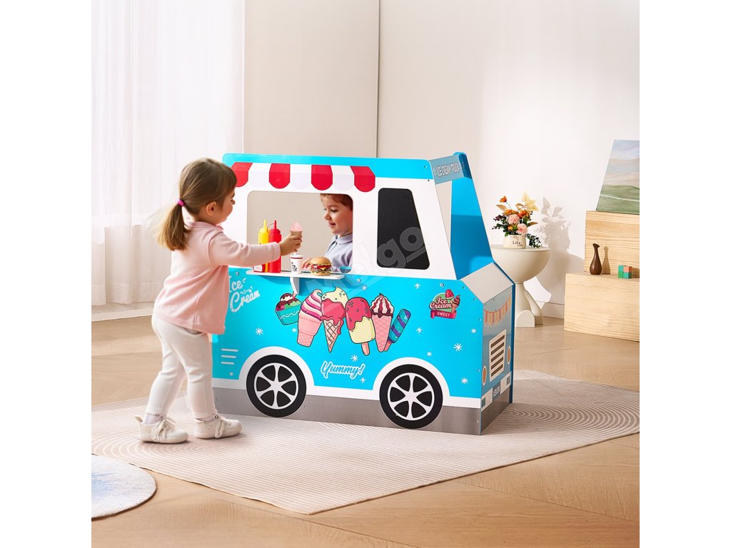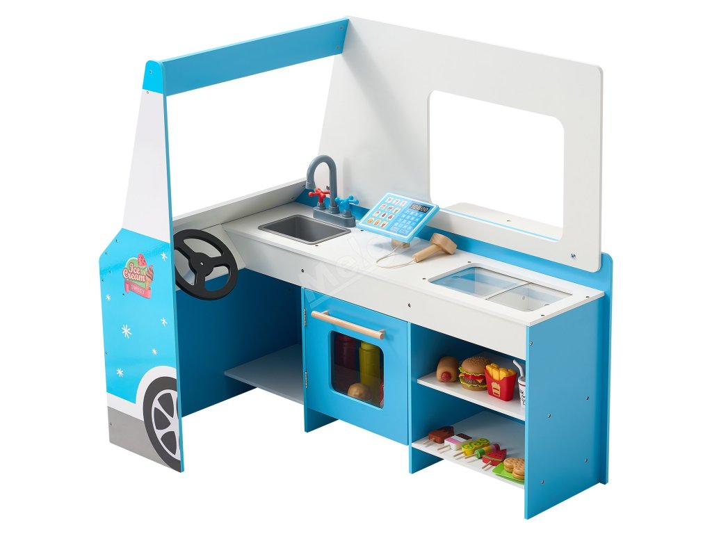 Není to jen dětský zmrzlinářský vůz, je to zážitek! Díky servírovacímu okénku, předstíranému skeneru a tabuli mohou děti provozovat vlastní zmrzlinárnu a popustit uzdu své fantazii.