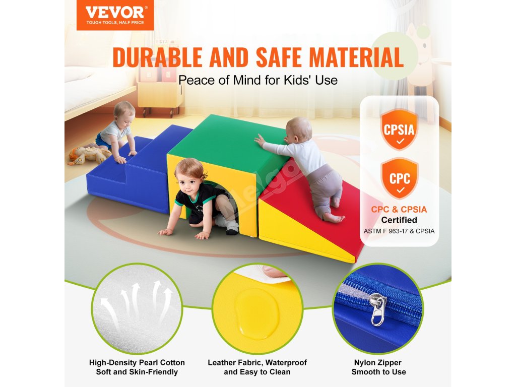 Tento pěnový prolézací tunel je vyroben z odolných materiálů, takže je odolný proti poškození a splňuje bezpečnostní certifikáty pro děti. Poskytuje dětem prostorný vnitřní prostor pro lezení, honičky a pro větší zábavu obsahuje i skluzavku, která umožňuje dětem klidnou hru.