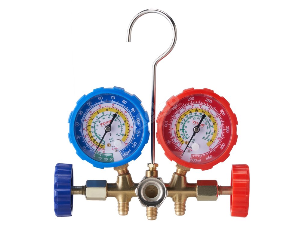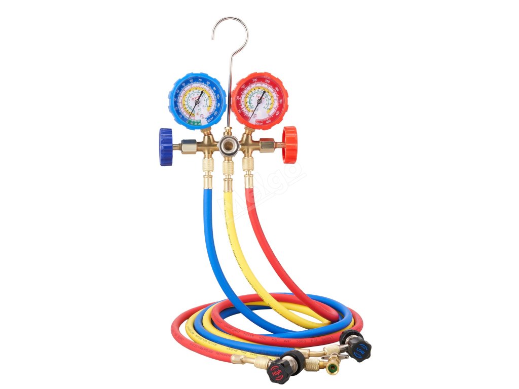 Diagnostický 3-cestný ac tlakoměr r134a/r22/r12/r502 s 152 cm hadicemi