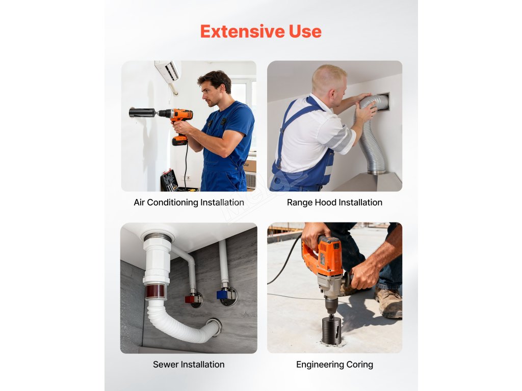 Jádrová vrtačka zajišťuje čisté a přesné otvory do tvrdých materiálů, jako jsou červené cihly, beton a pěnové bloky. Hodí se pro všechny vaše potřeby vrtání v rámci stavebních a renovačních projektů.