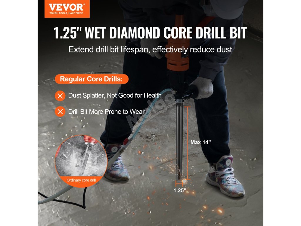 Diamantová korunka na mokro 1-1/4" 14" hloubka 5/8"-11 závit na beton