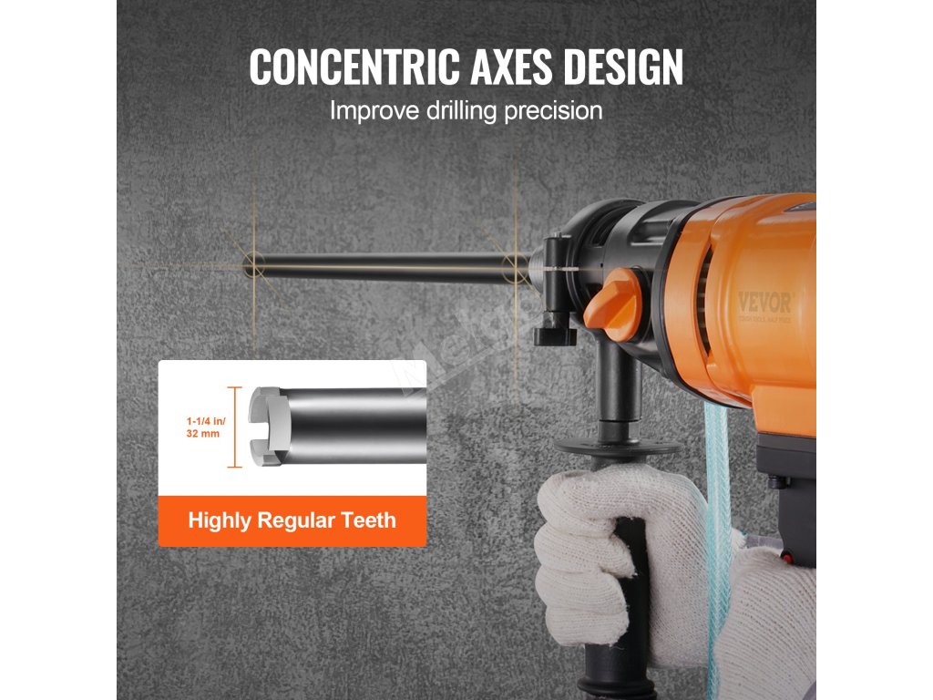 Soustředná konstrukce hřídele zajišťuje stabilnější vrtání. Snižuje vibrace a kmitání vrtáku, čímž se snižuje pravděpodobnost zaseknutí vrtáku nebo jeho odchýlení z dráhy a zajišťuje plynulejší operace.
