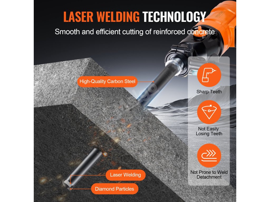 Technologie laserového svařování zajišťuje diamantovému jádrovému vrtáku výjimečnou odolnost proti opotřebení a stabilitu při vysokých teplotách, takže je ideální pro vrtání v různých podmínkách, a to i v prostředí s vysokými teplotami. Je méně náchylný ke ztrátě zubů a oddělování svarů, což vede k prodloužení životnosti nástroje.
