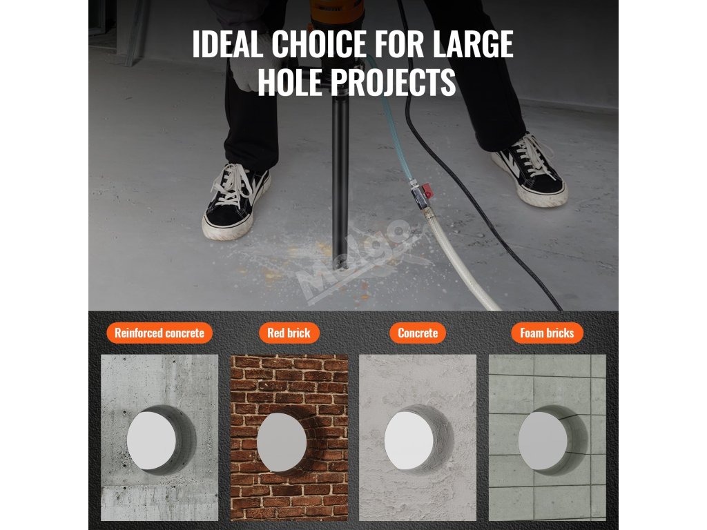 Mokrá vrtačka zajišťuje čisté a přesné otvory v náročných materiálech, jako je železobeton, červené cihly, beton, pěnové cihly a další.