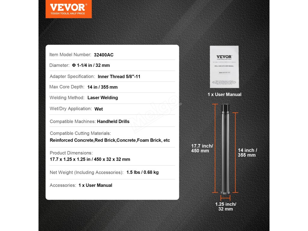 | Maximální hloubka jádra | 14 palců / 355 mm |