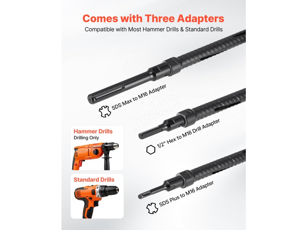 Naše diamantová korunková vrtačka za sucha obsahuje tři adaptéry pro snadnou kompatibilitu s vrtáky SDS Plus, SDS Max a šestihrannými vrtáky 1/2". Není třeba nic dokupovat - tato sada zvládne všechny vaše vrtací potřeby.