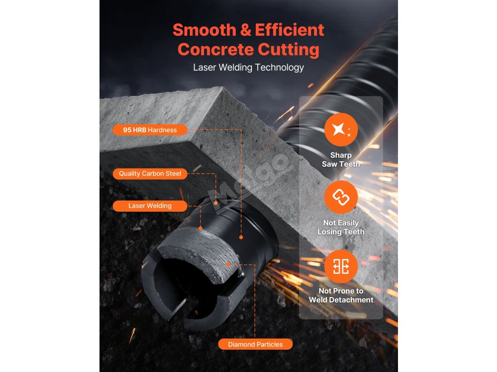 Tento vrták do betonu je vyroben s vysoce přesným svařováním pro vynikající odolnost proti opotřebení a stabilitu při vysokých teplotách a udržuje diamantové zuby pevné a bezpečné v náročných podmínkách vrtání, minimalizuje ztrátu zubů nebo jejich oddělování a zajišťuje dlouhou životnost.