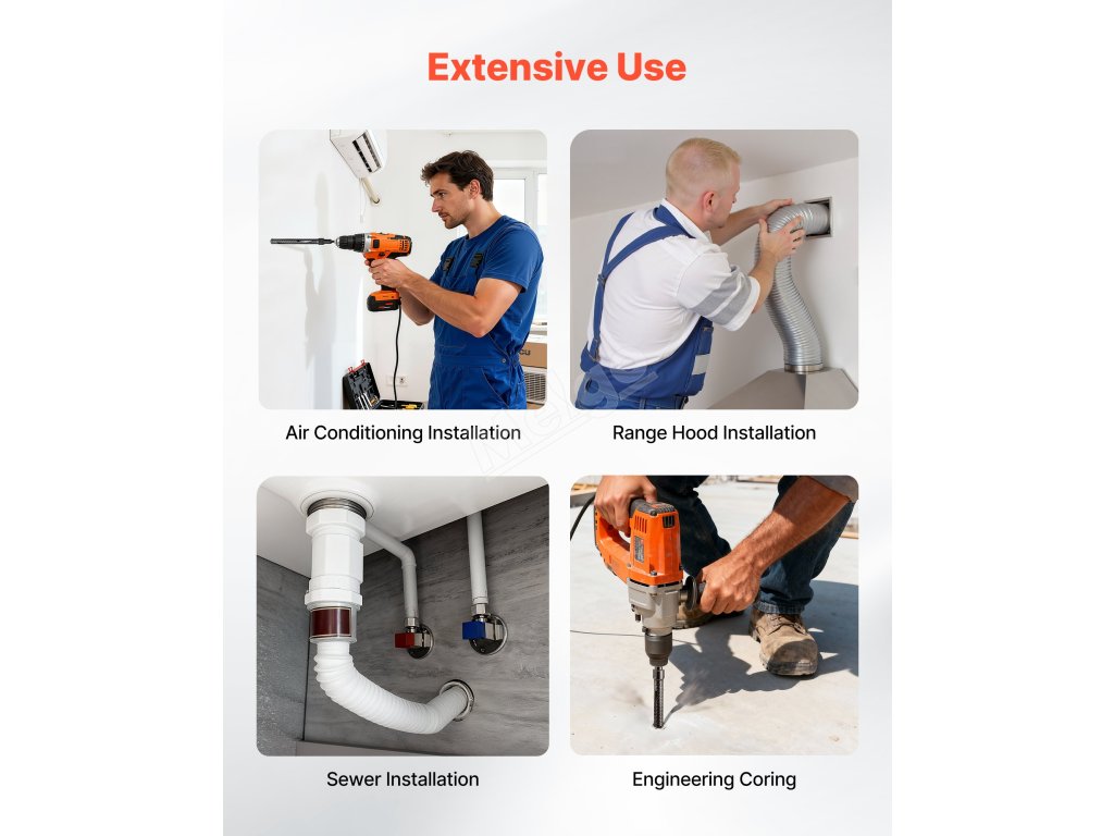 Jádrová vrtačka zajišťuje čisté a přesné otvory do tvrdých materiálů, jako jsou červené cihly, beton a pěnové bloky. Hodí se pro všechny vaše potřeby vrtání v rámci stavebních a renovačních projektů.